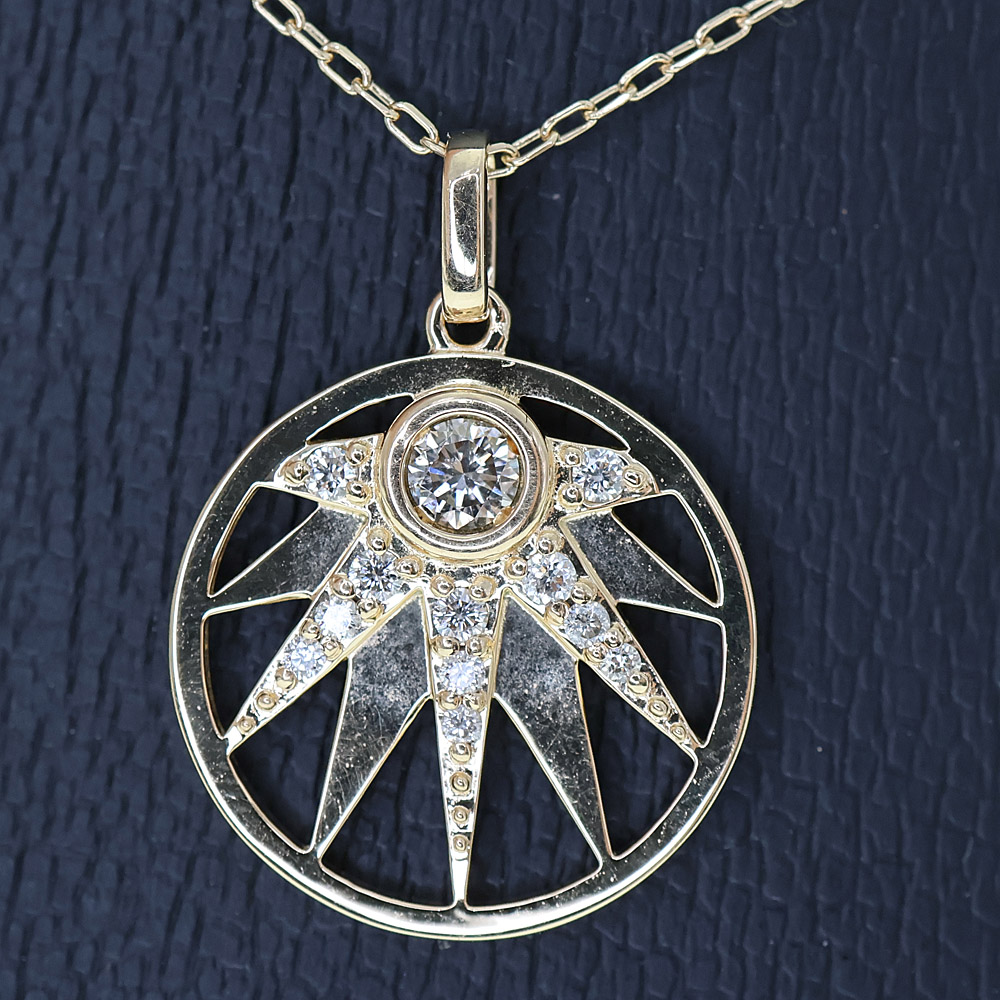 植物モチーフに中央部分には細かなダイヤモンドと、 一粒のダイヤモンドがセッティングされたネックレスです。 この機会に是非いかがでしょうか。