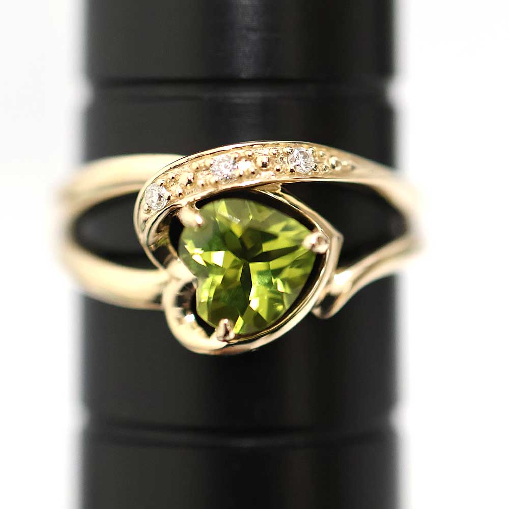 大きなハートシェイプのペリドットがセンターに配置された上品なリングです。 爽やかなグリーンカラーが印象的で、上部にある小粒ストーンが、よりペリドットの美しさを引き立てています。 この機会に是非いかがでしょうか。