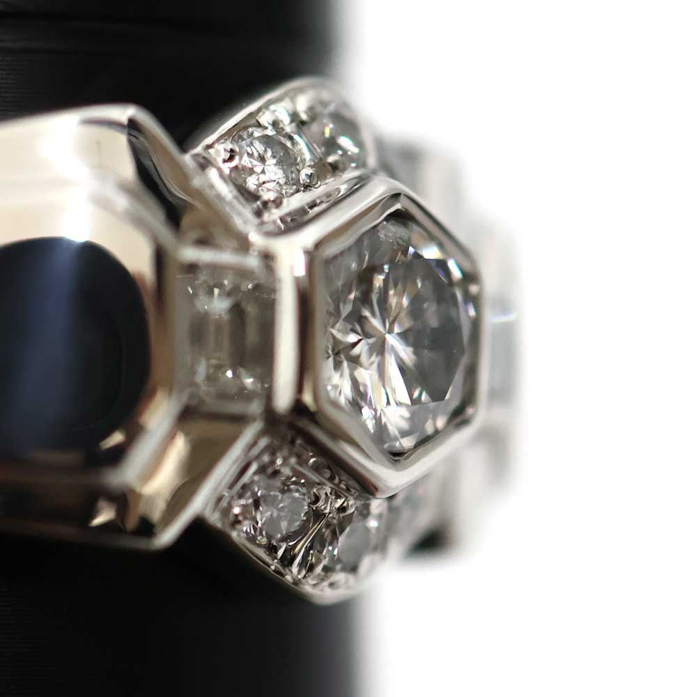 ダイヤモンドがふんだんに使用されたメンズ向けのリングです。 地金部分もずっしりとしており、手元のワンポイントになります。 この機会に是非いかがでしょうか。