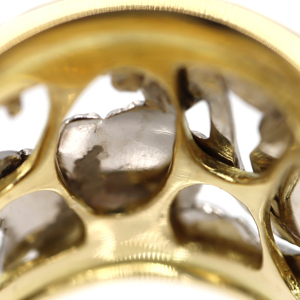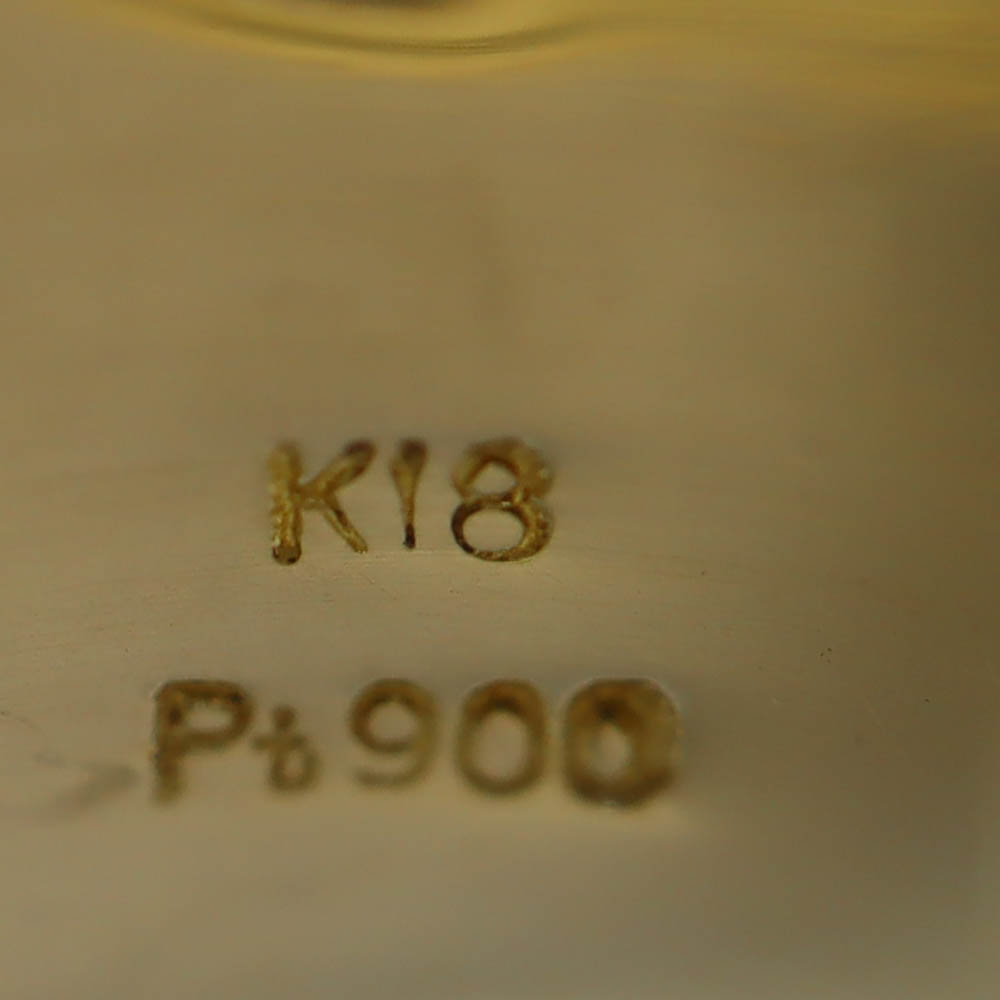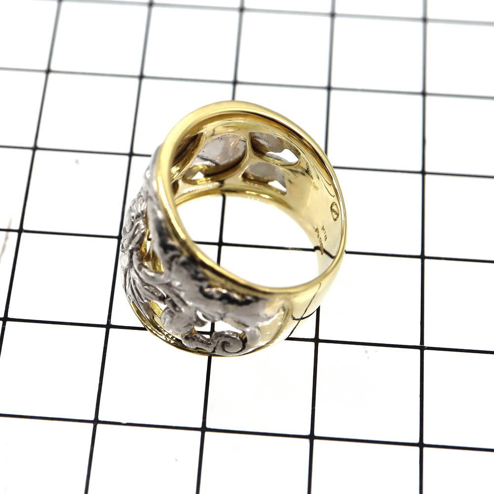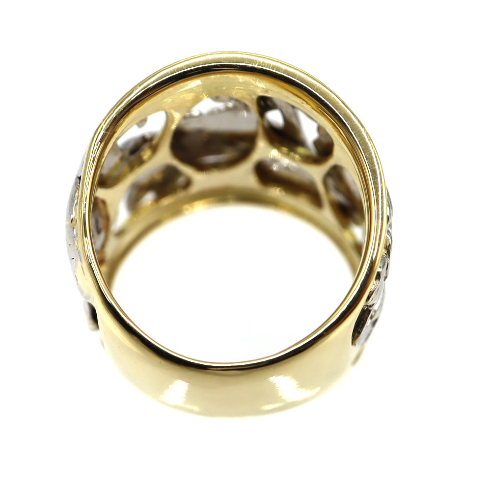 K18ゴールドの華やかな輝きと、Pt900プラチナの凛とした存在感を組み合わせた、インパクト抜群のデザインリングです。