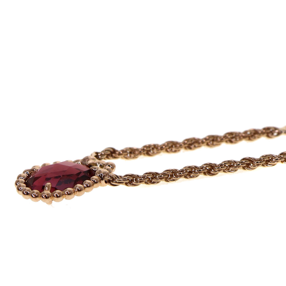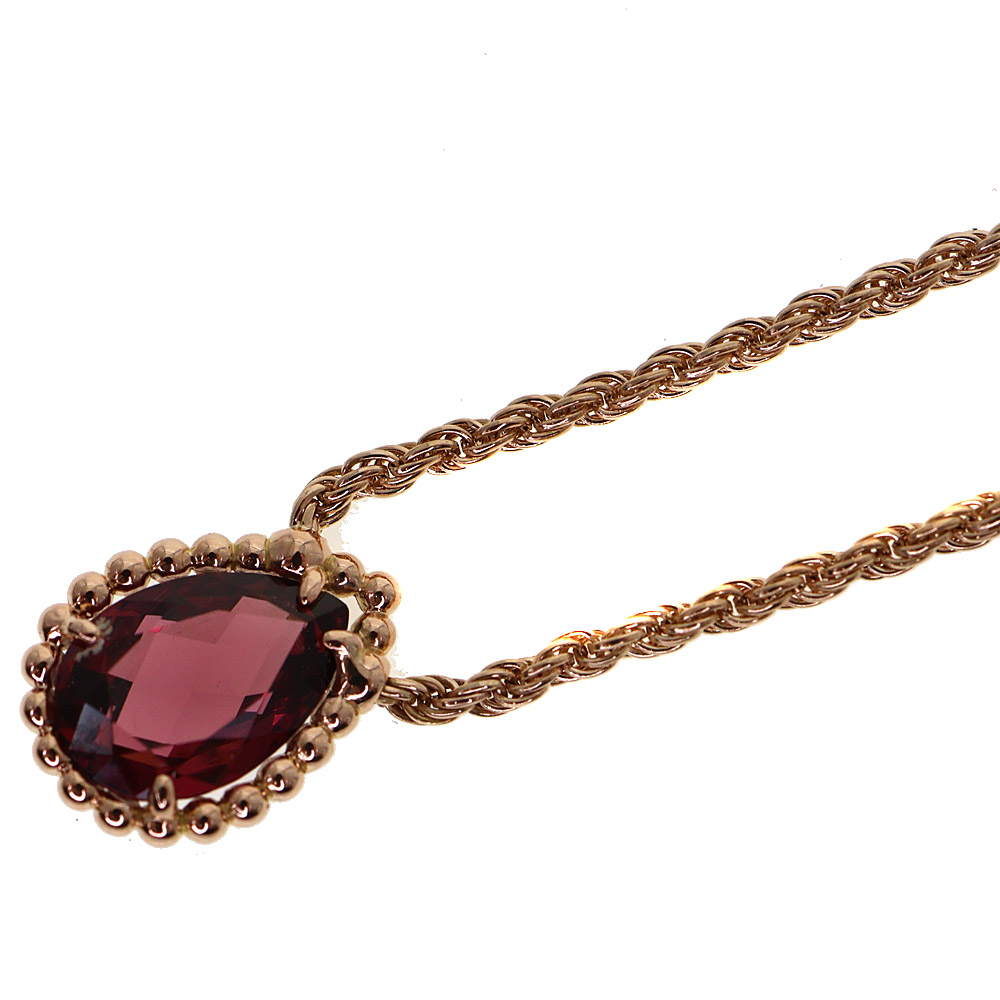 フランスの名門ジュエラー、ブシュロンによる「セルパンボエム」コレクションのエクストラスモールサイズペンダントです。 18Kピンクゴールド製の繊細なツイストチェーンに、ペアシェイプのロードライトガーネット(約1.40ct)とラウンドカットダイヤモンド(0.03ct)があしらわれています。 スネークの神秘的な美しさを象徴するドロップモチーフが胸元に優雅な輝きを添えます。 この機会にぜひいかがでしょうか。