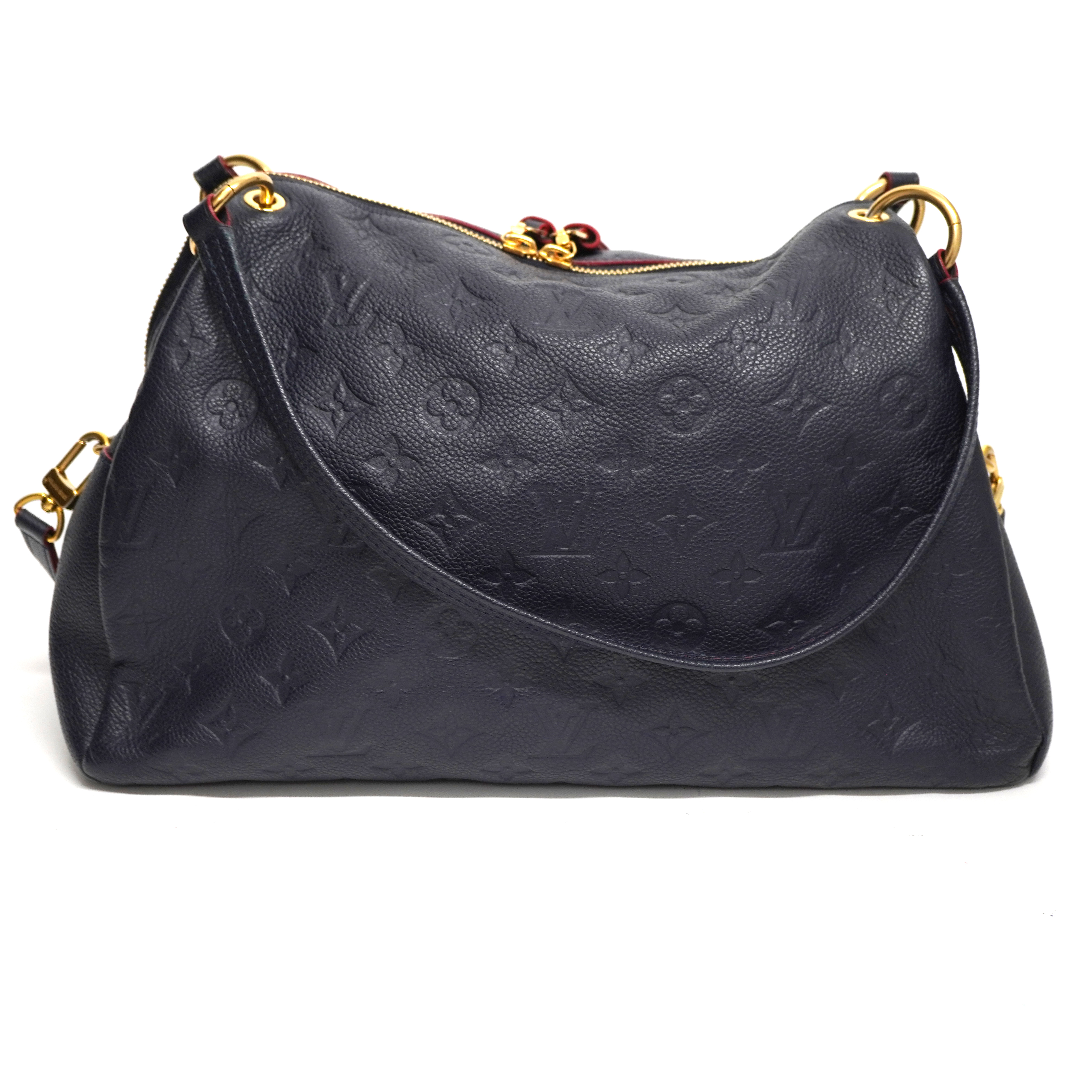 ネイビーカラーのオールレザー素材でモノグラムが型押しされた落ち着きのある上品なデザインです。 収納性のあるお鞄で色んなシーンにてお使いいただけます。 お探しの方はこの機会に是非いかがでしょうか。