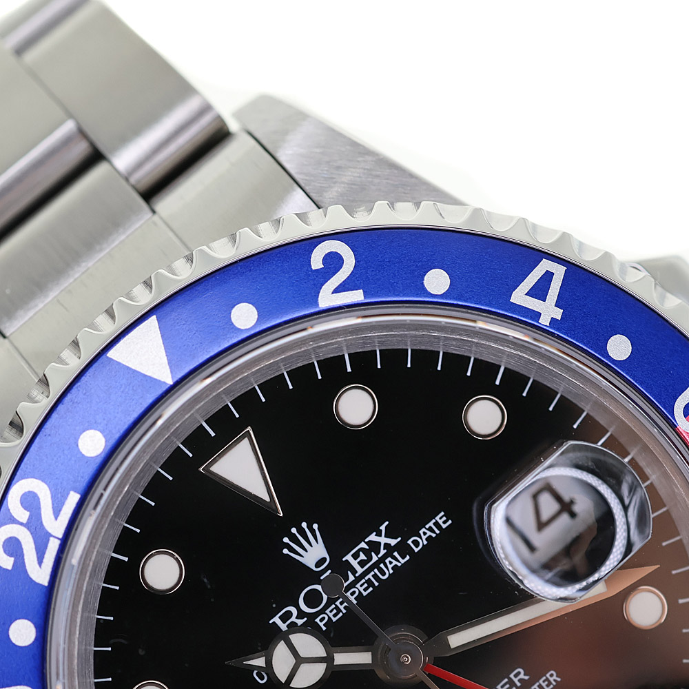 ロレックスの中でもパイロットウォッチに位置づけられるモデルです。 GMT針を搭載しており、このGMTマスターは2か国の時間を表示する事が可能です。 ムーブメントはCal.3175の為、カレンダーのクイックチェンジが可能で操作性にも優れています。 独特なカラーリングで目を惹く一本です。