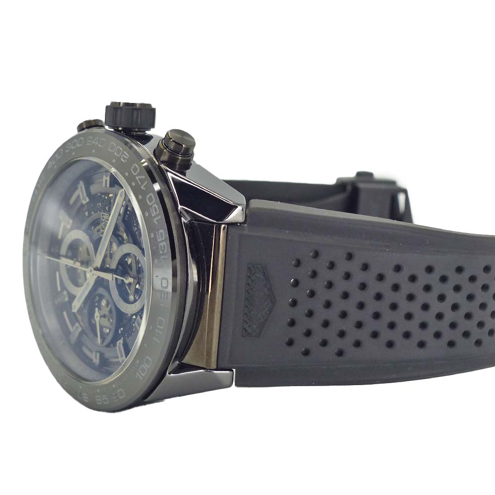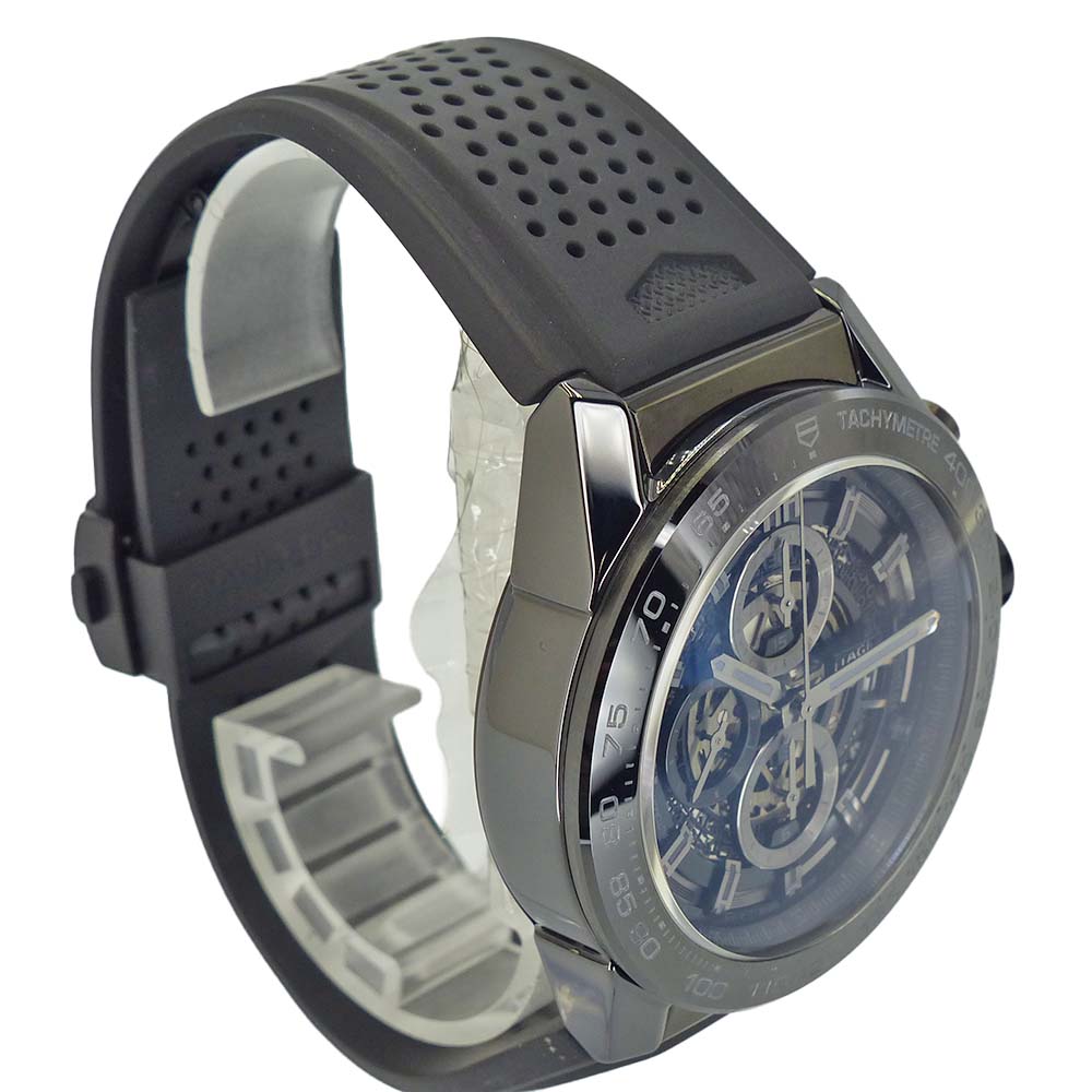 | 仕様 | 自動巻き キャリバー:ホイヤー01 パワーリザーブ:50時間 精度:+10~+15秒/日 防水:100m防水 クロノグラフ・スケルトン・日付表示 |