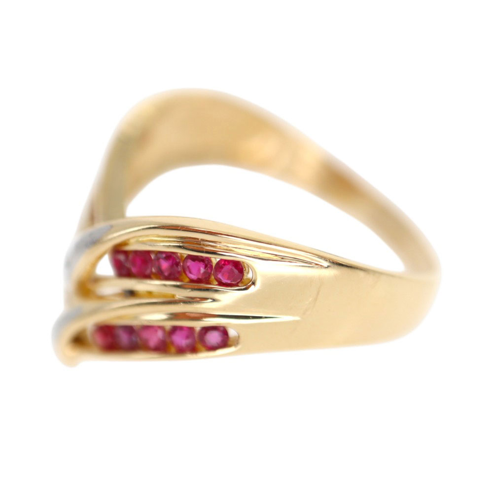 まるで2本のリングが重ね付けされているかのように見える指輪です。 V字のデザインが指元を華奢にみせてくれます。