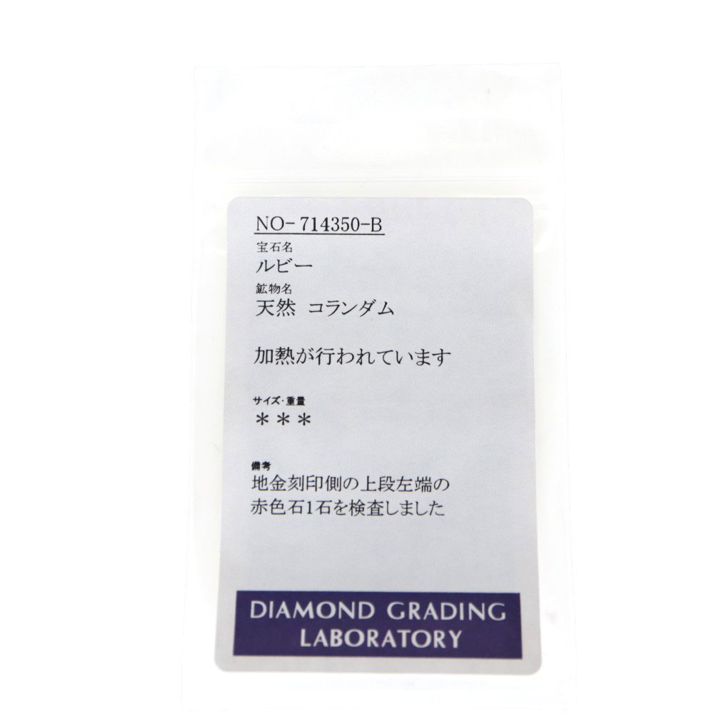| 重さ | 総重量約:4.2g ルビー:ct数不明 ダイヤモンド:ct数不明 |