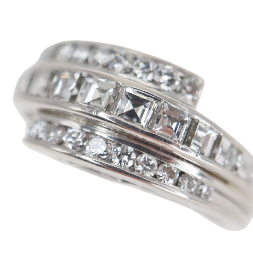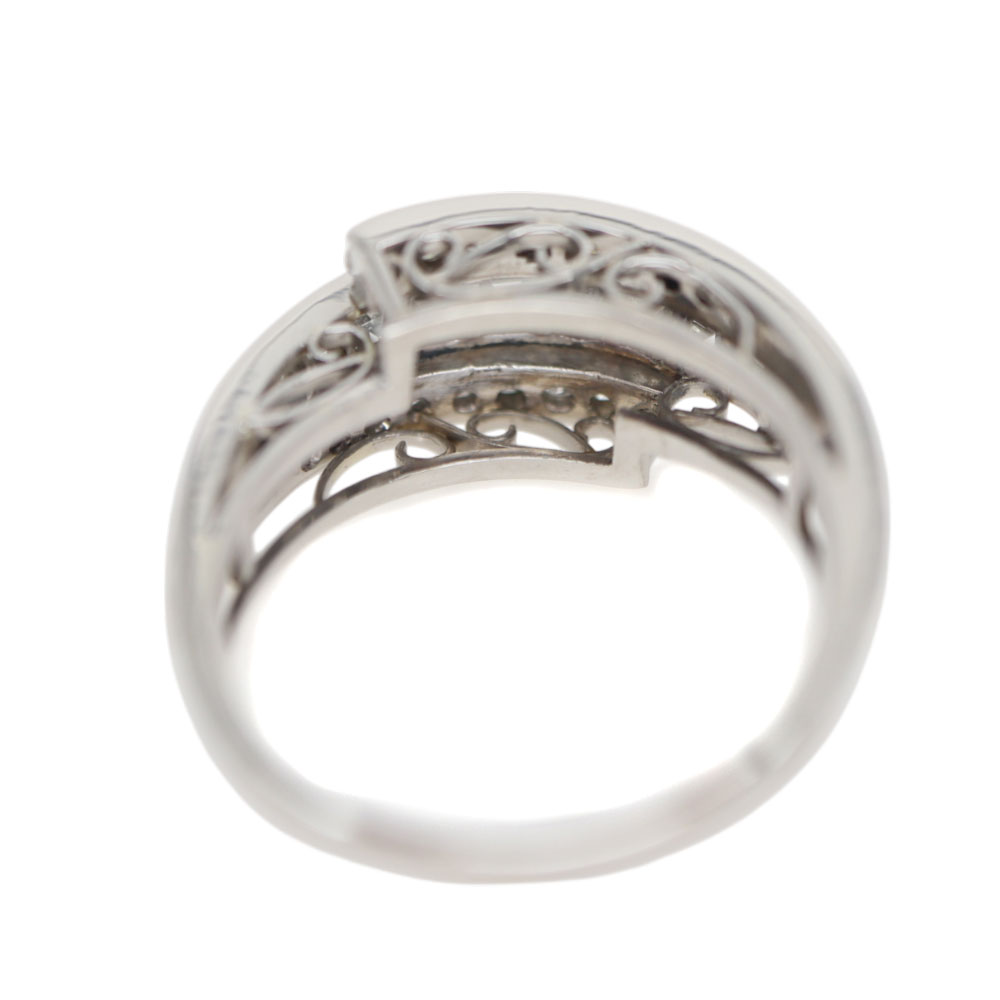 まるで3つのリングを重ね付けしているかのようなボリュームのリング。 上から見たデザインもレースのようでどこから見ても魅力的です。