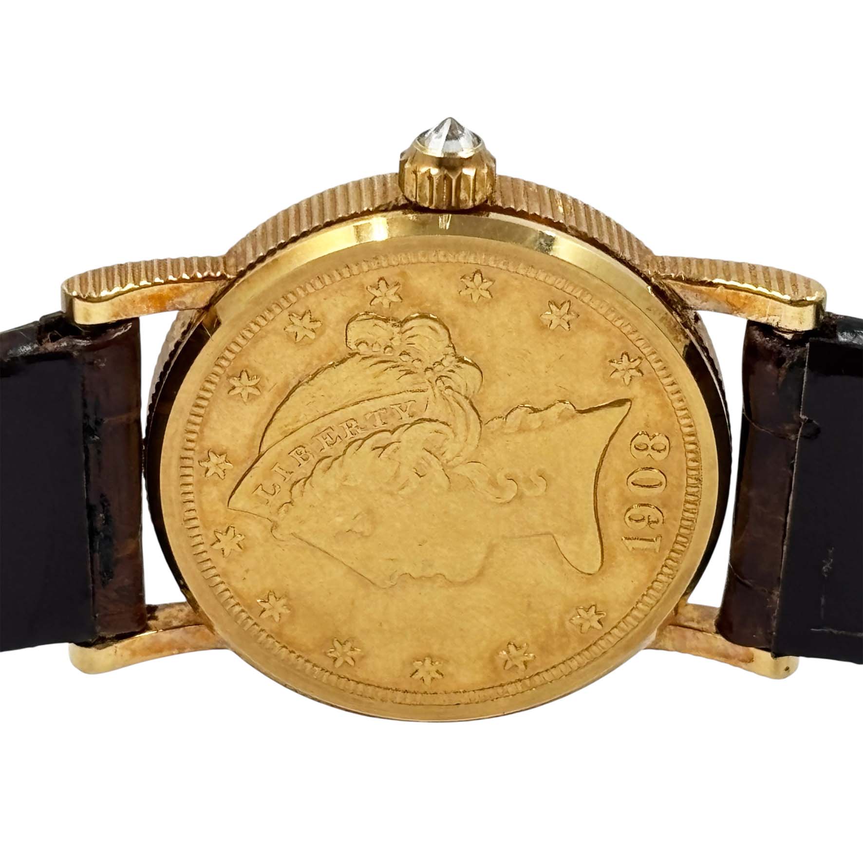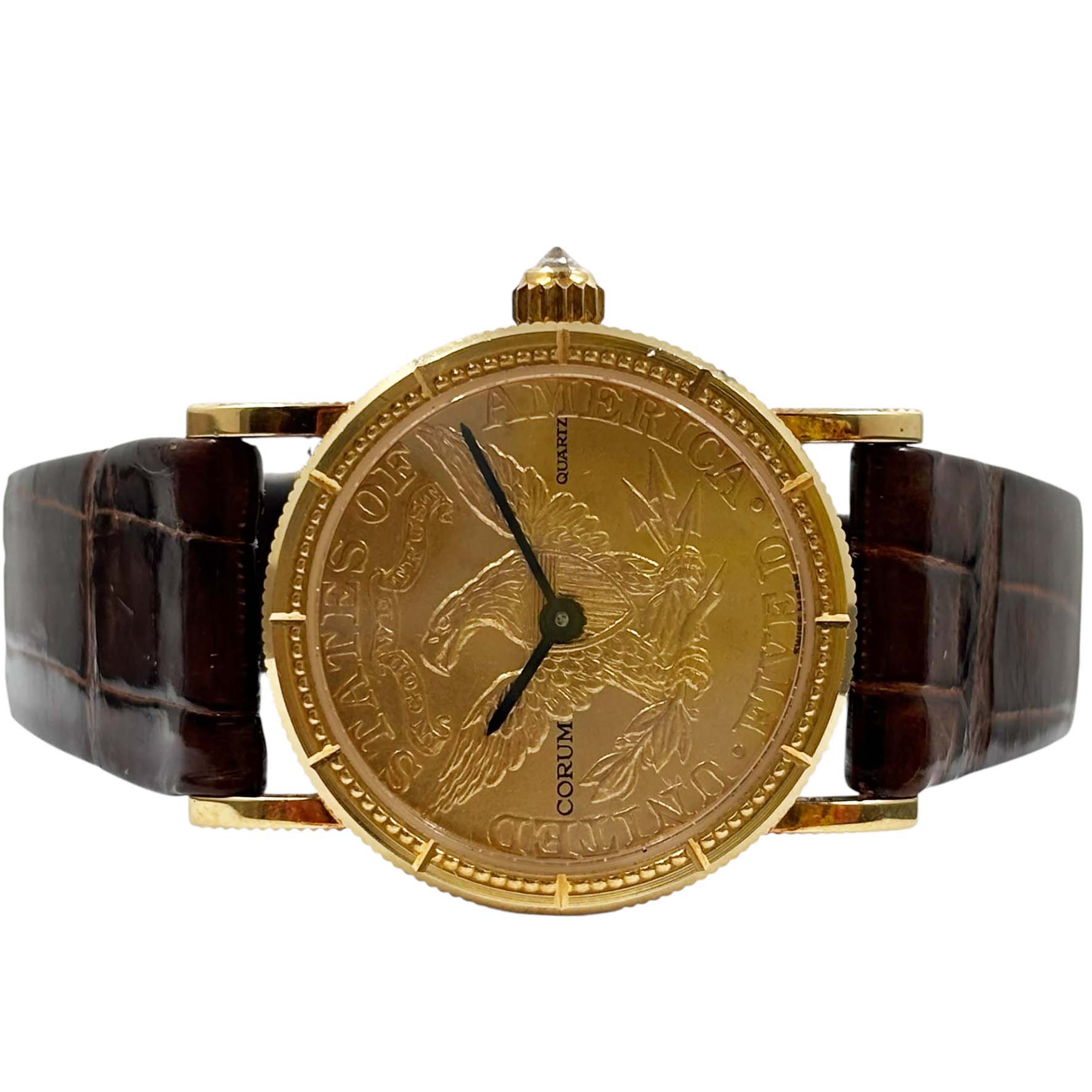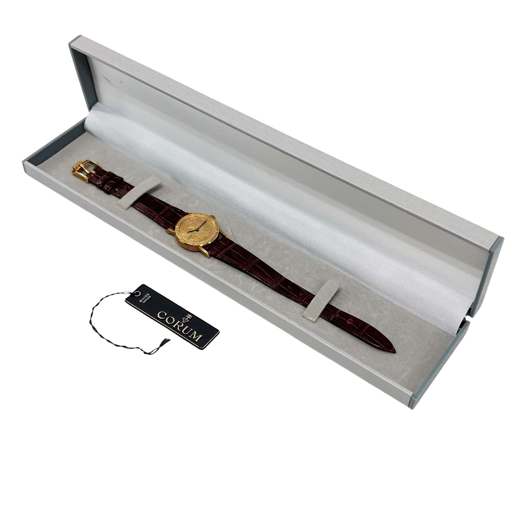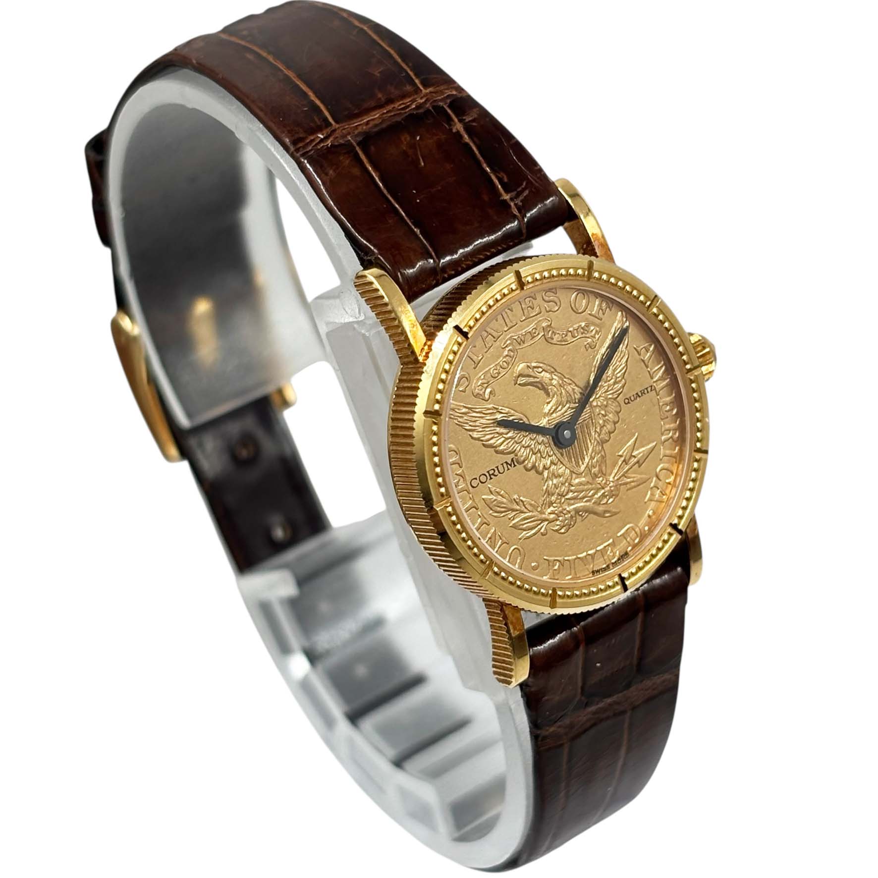 | 商品説明 | コルムの5ドルコインウォッチは、アメリカの金貨である5ドルコインを文字盤として使用した腕時計です。この時計は、高級時計ブランドとしてのコルムの象徴的なデザインの一つで、通常は高品質のクォーツまたは機械式ムーブメントが内蔵されています。コインが持つ歴史的な価値と精巧な時計技術が組み合わさったユニークなモデルです。クラシックで洗練された見た目が特徴で、多くのコレクターや時計愛好家の間で人気があります。ケースバックもイエローゴールドで作られています。