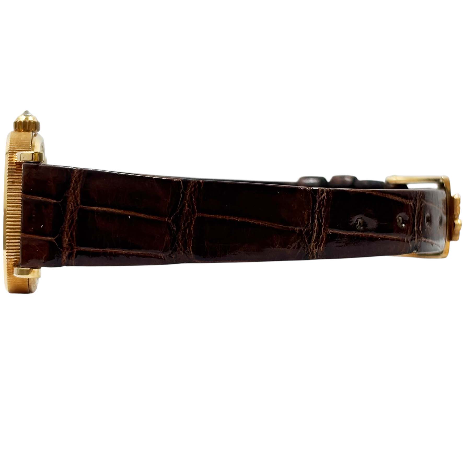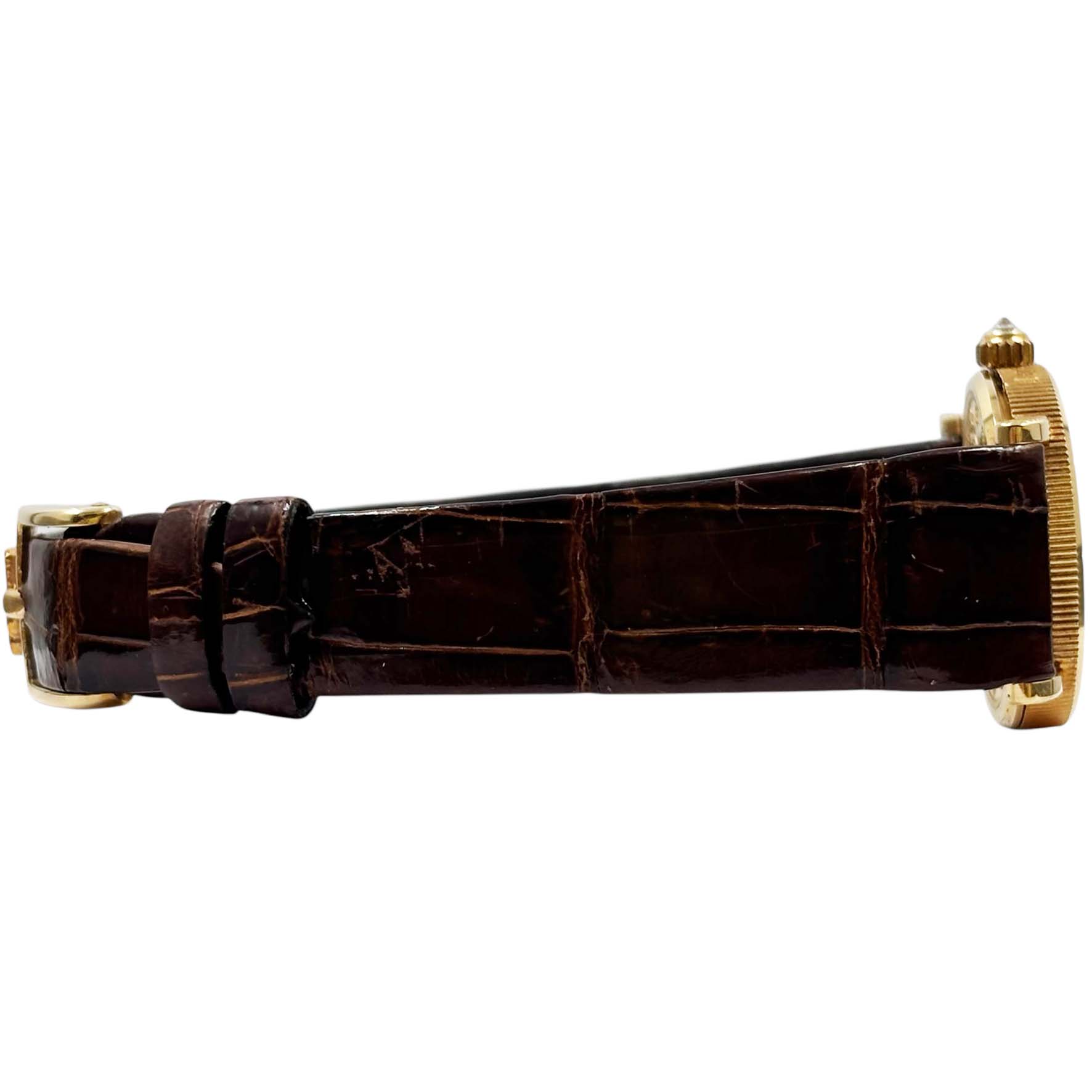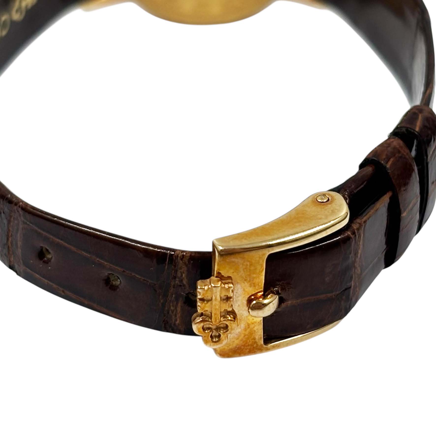 | 素材 | ケース:K18YG(イエローゴールド) ブレスレット:純正レザーベルト ダイヤル(色):K22YG(イエローゴールド) 風防素材:サファイアクリスタル |