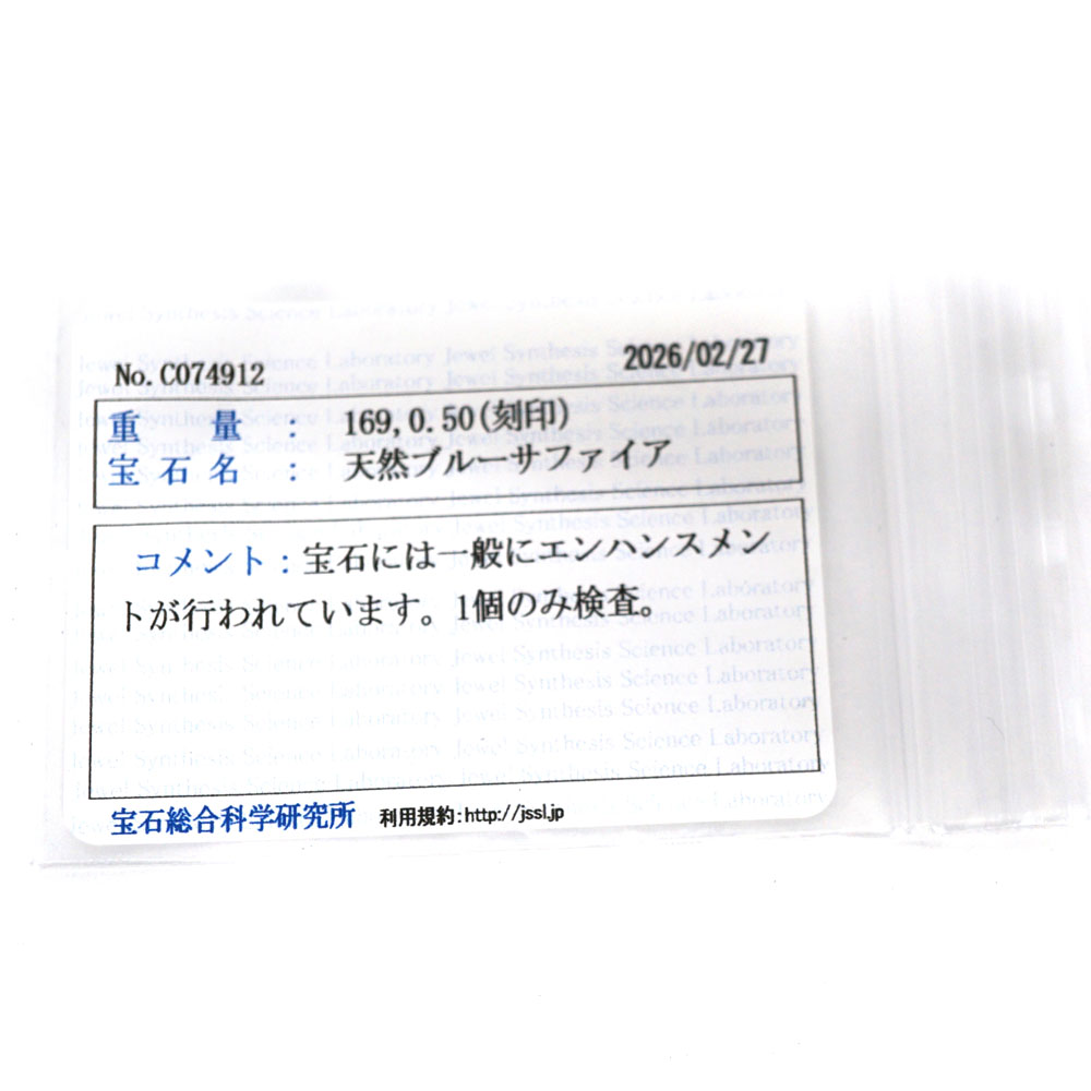 | 素材 | Pt850(プラチナ850) Pt900(プラチナ900) S1.69ct(サファイア) D0.50ct(ダイヤモンド) |