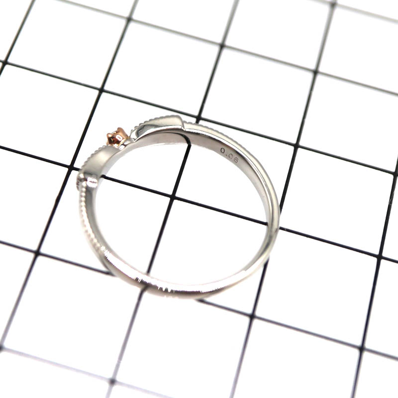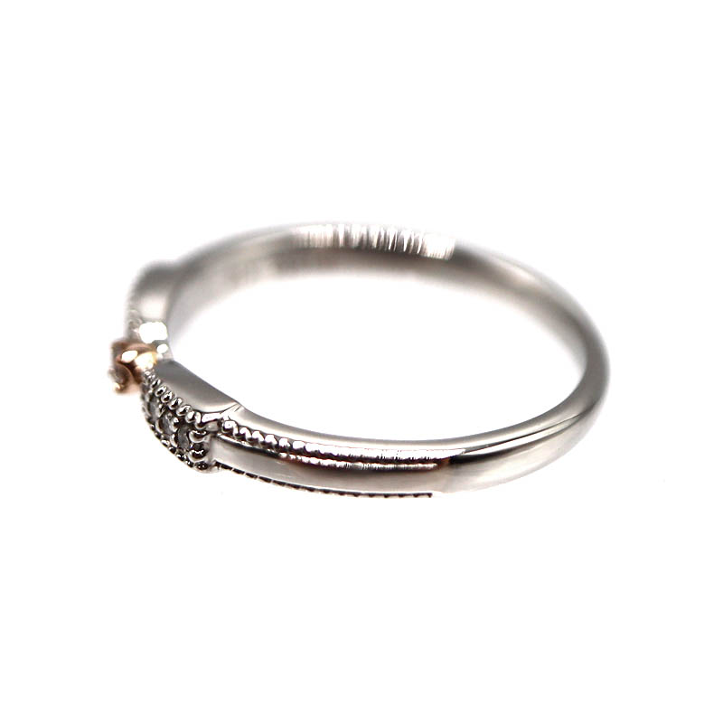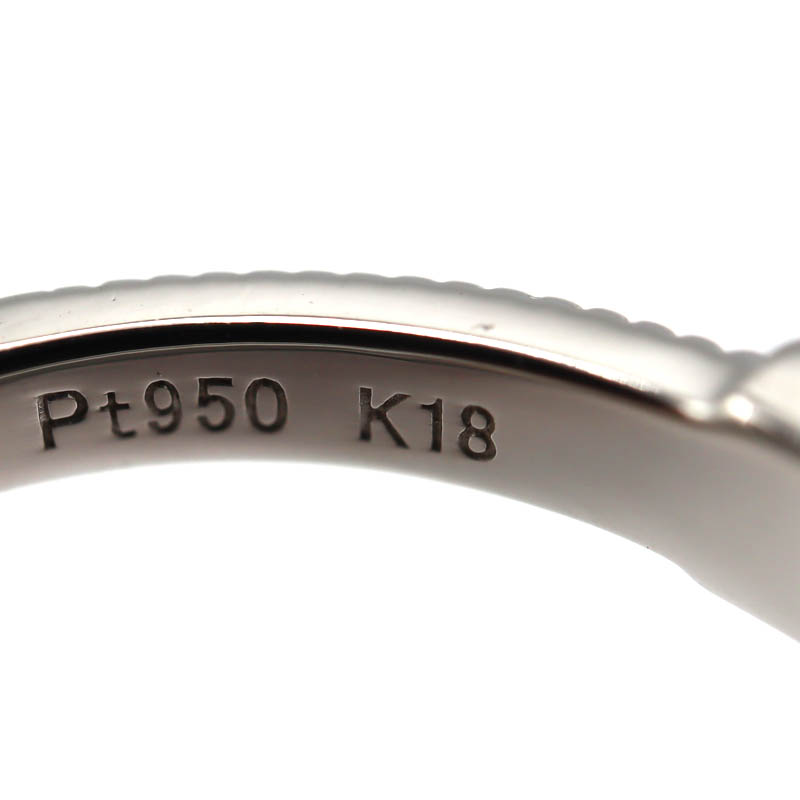 K18ゴールドとPt950プラチナを組み合わせた、上品なコンビデザインのリング。