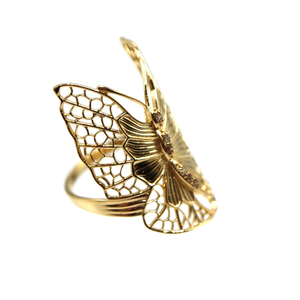 可憐な蝶モチーフが印象的な、K18ダイヤモンドリング。
