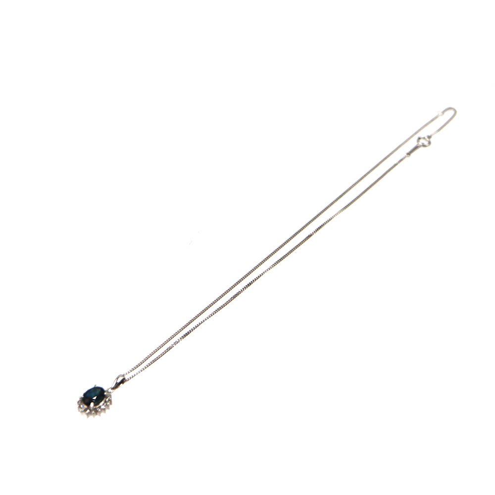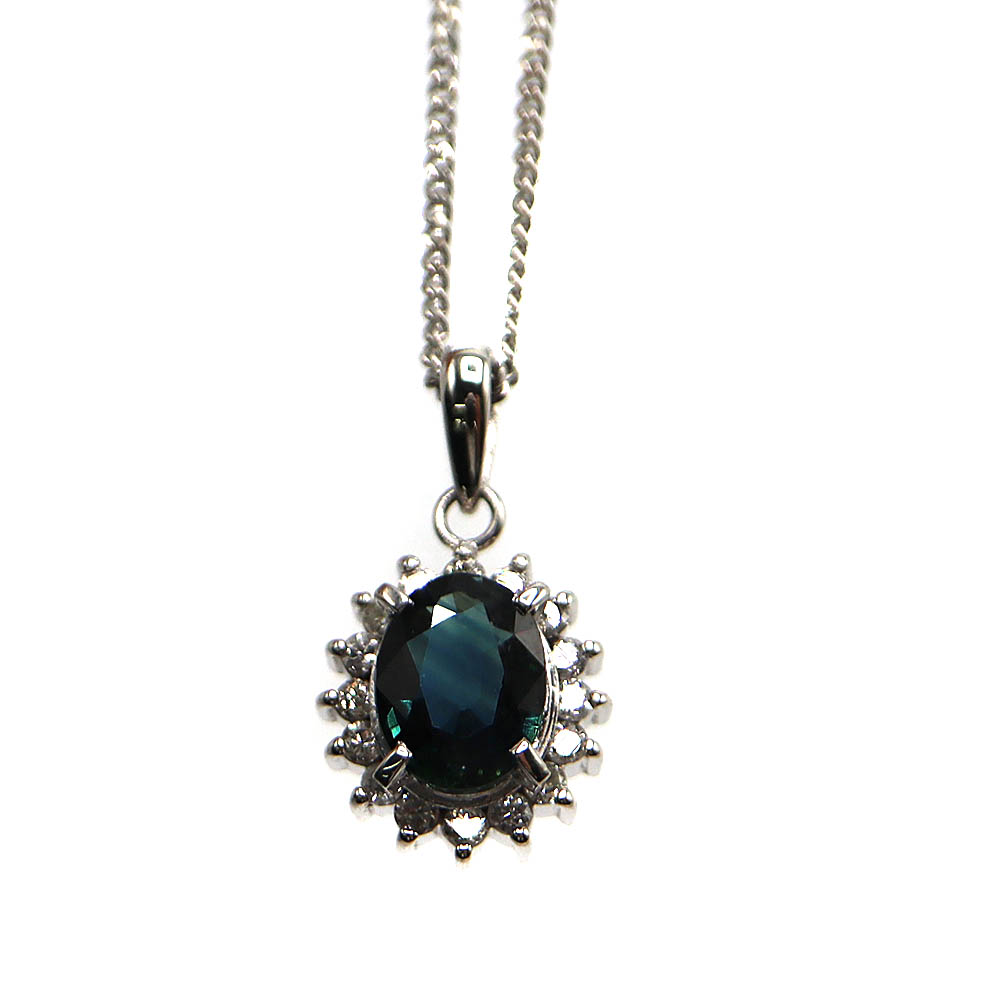 深みのあるブルーが美しいサファイアを主役に、ダイヤモンドが繊細に輝く上品なネックレスです。