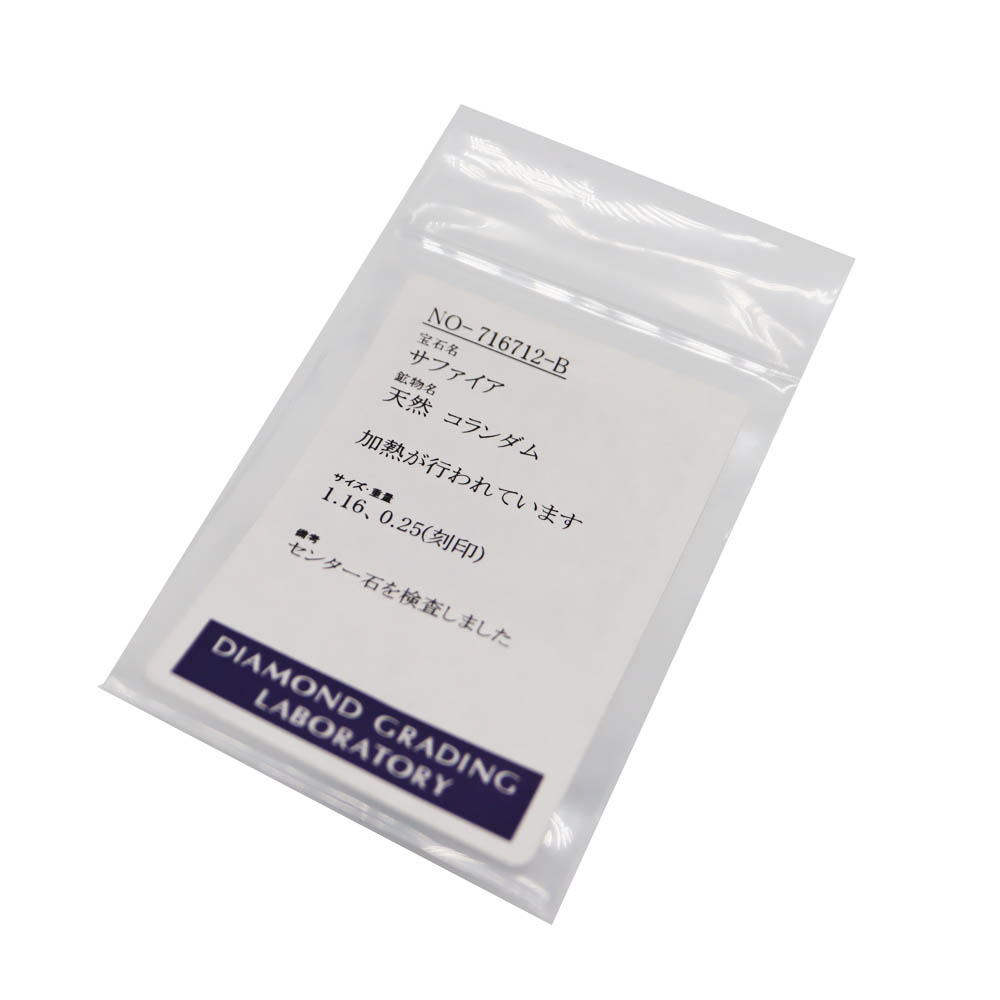 | 素材 | Pt850(プラチナ)/S1.16ct(サファイア)、D0.25ct(ダイヤモンド) |