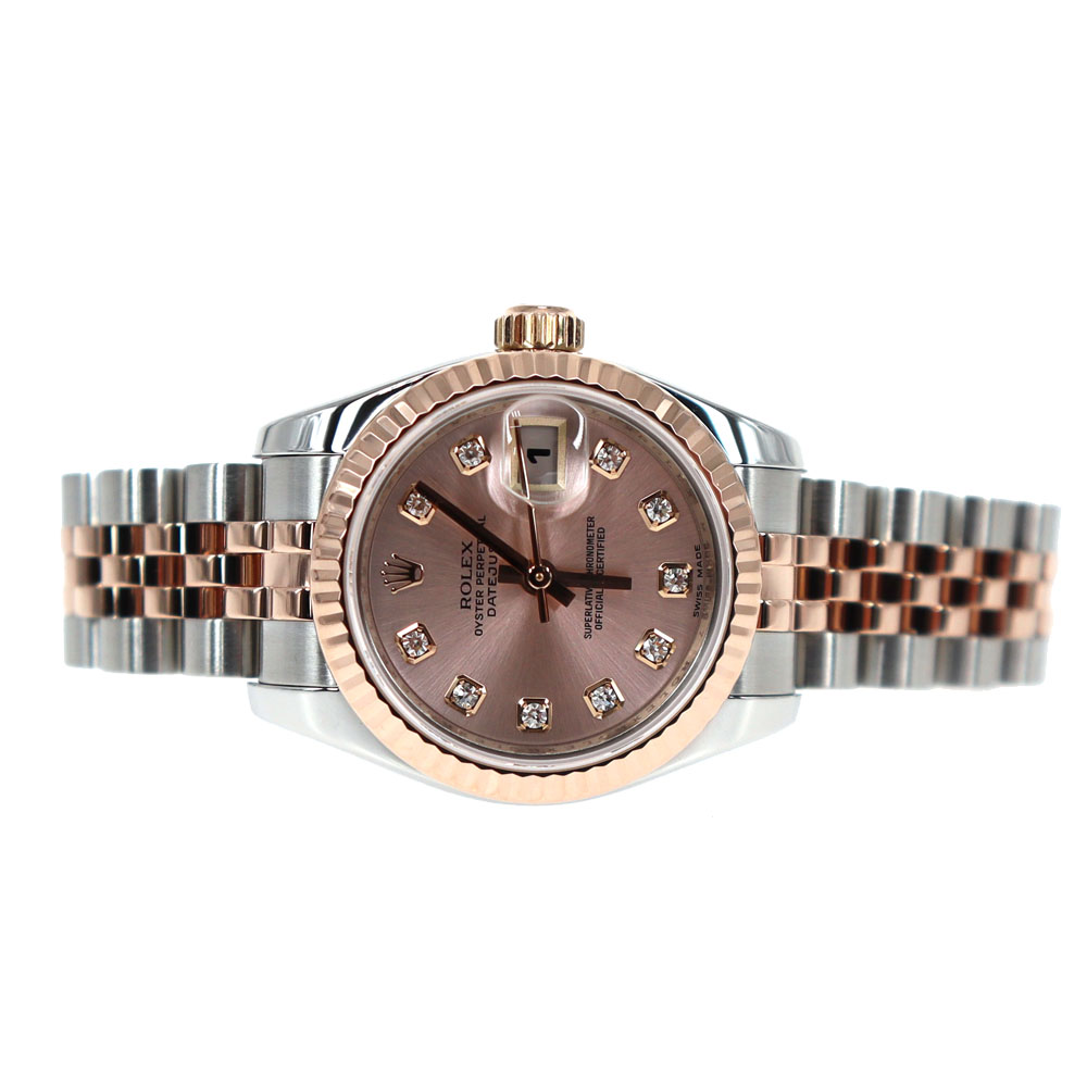 | 商品説明 | ROLEX【ロレックス】 179171G デイトジャスト の紹介です。 デイトジャストとは午前0時頃瞬時に日付が変わるデイトジャスト機構、全回転式ローターを搭載したパーペチュアル機構、ロレックス三大機構を搭載したモデルです。 美しいカッティングが施されたフルーテッドベゼルとブレスレット中央パーツにピンクゴールドを使用したラグジュアリー感溢れるモデルですので、手元を華やかにしてくれます。 ※尚、当サイトの販売金額より店頭での販売金額の方をお安く設定させて頂いております。予め、ご了承下さいませ。(一部セール品等除く) |