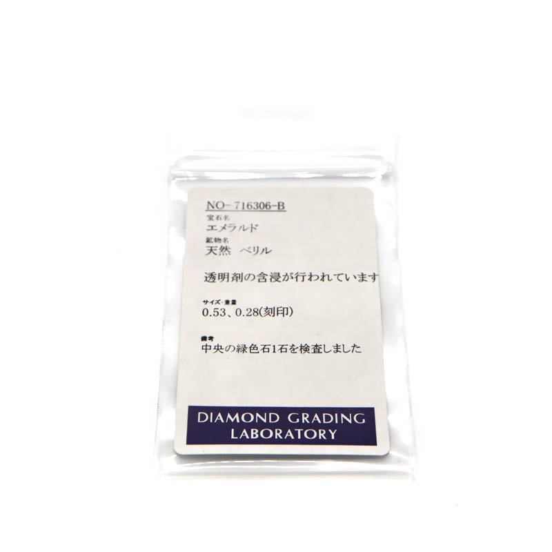 | 素材 | Pt900(プラチナ) エメラルド0.53ct ダイヤモンド0.28ct |