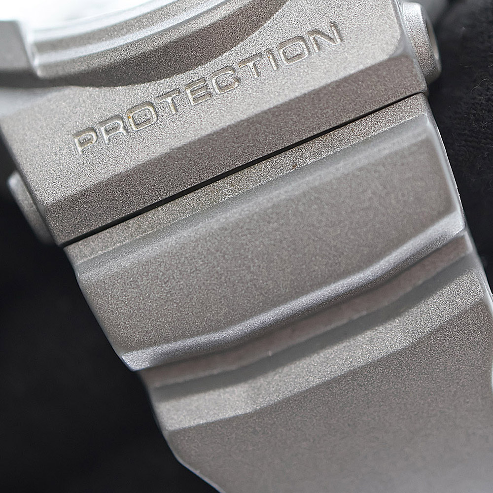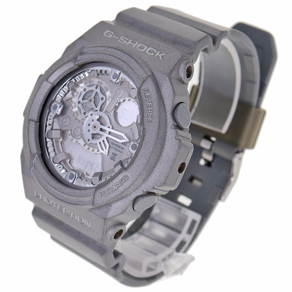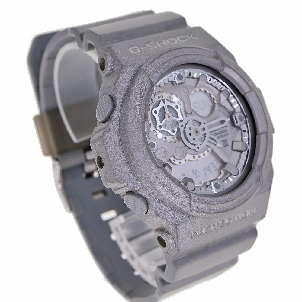 CASIOの人気シリーズG-SHOCKとフランスのファッションブランド 「Maison Martin Margiela(メゾン マルタン マルジェラ)」がコラボした、 限定モデル「GA-300MMM-8ADR」。世界3000本限定で発売された希少なモデルで、 シルバーカラーを基調とした個性的なデザインが特徴です。 ショックレジスト構造により高い耐衝撃性能を備え、20気圧防水やLEDライト、 ワールドタイム、ストップウォッチ、アラームなど多彩な機能を搭載。