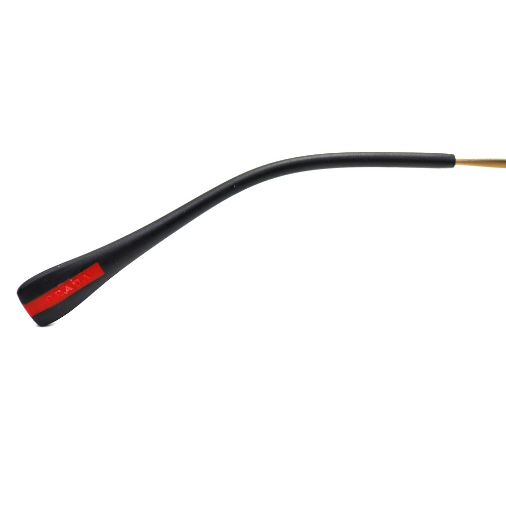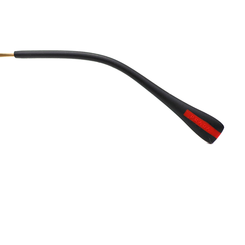 テンプルは超軽量スチールワイヤー製で、ラバー製のエンドキャップとリネアロッサのロゴ入り。