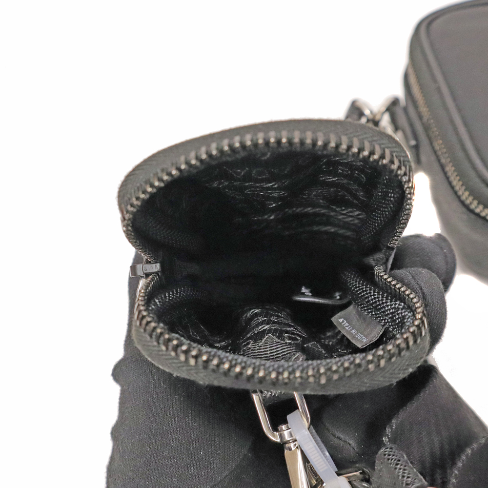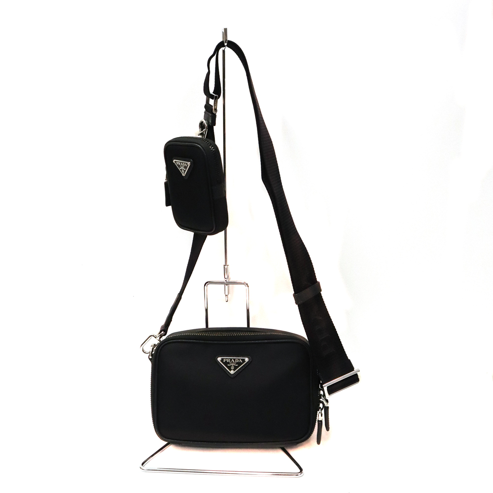 プラダらしいナイロンのモデル。 取り外し可能なポーチ付き・ショルダーストラップにはロゴ入りでおしゃれなデザインとなっています。