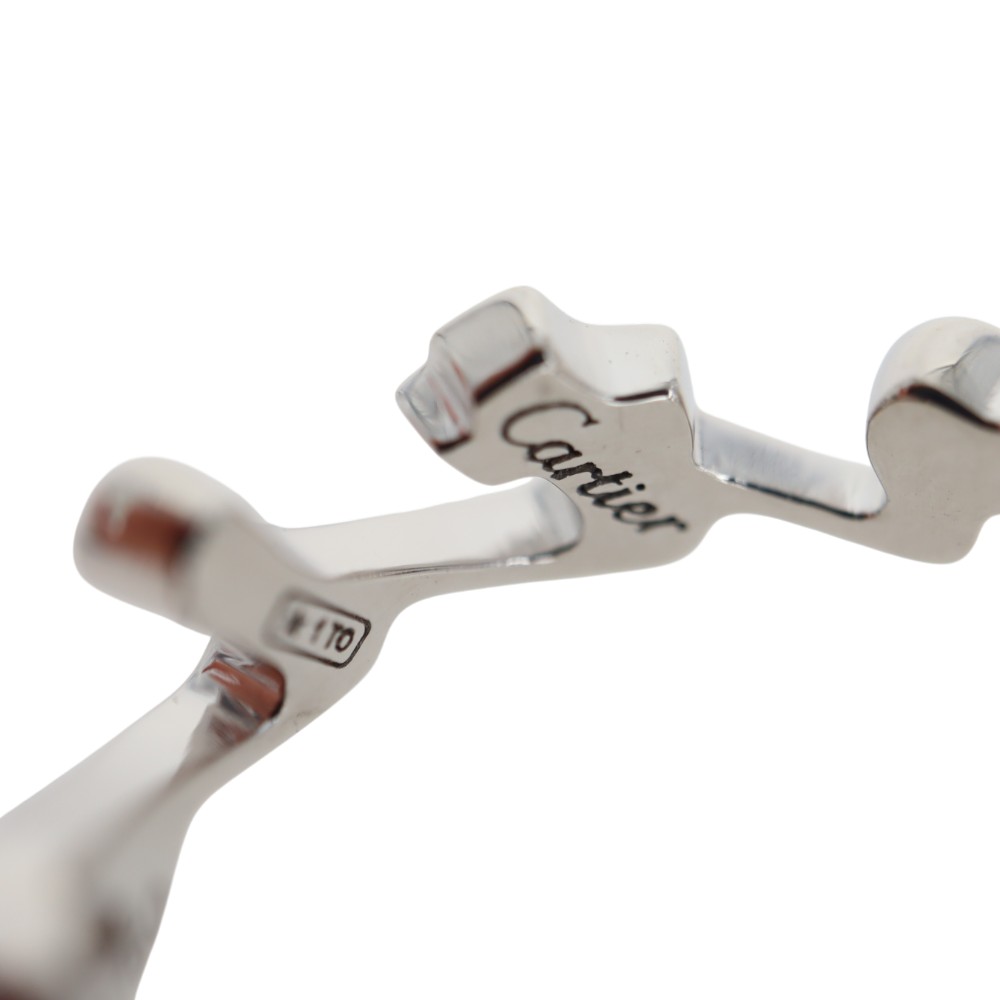 カルティエのブランド名で象られたリングはシンプルで洗礼されたリング。 上品さもありつつ個性的でおしゃれなデザインです。