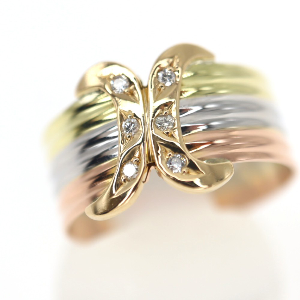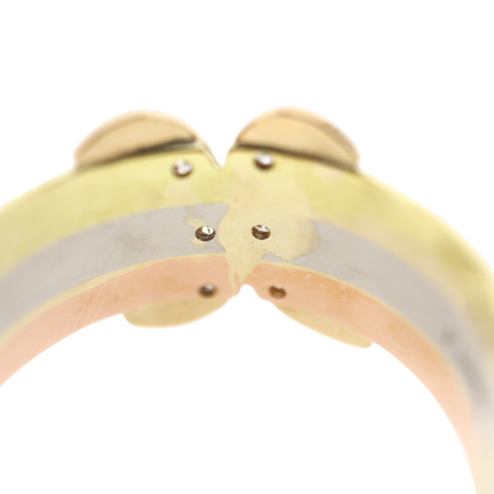 ゴールドとプラチナが使用されたスリーカラーの贅沢なアイテム。 中央にはダイヤモンドもセッティングされており、お手元が華やぐ一品です。 この機会に是非いかがでしょうか。