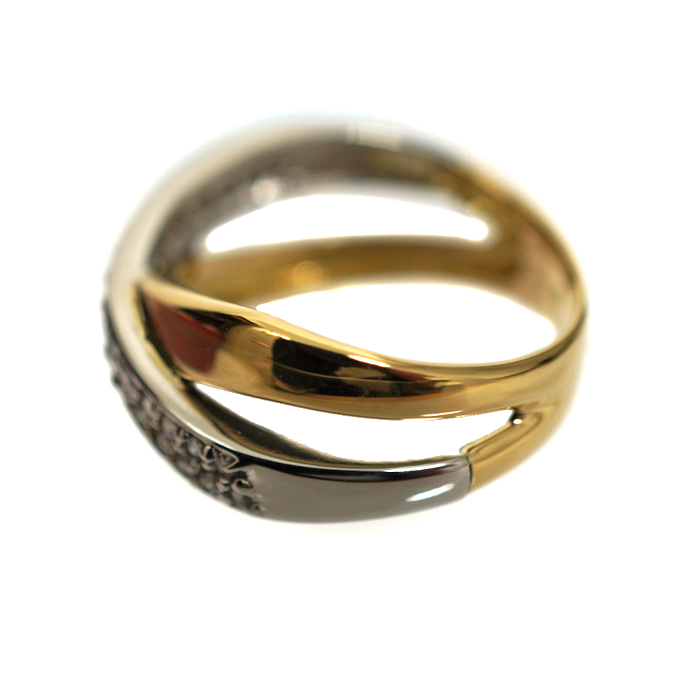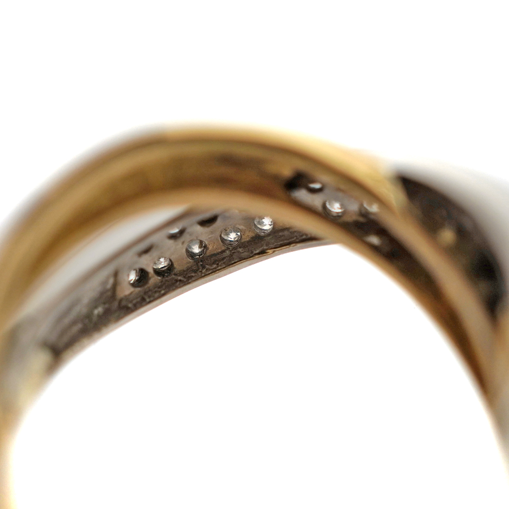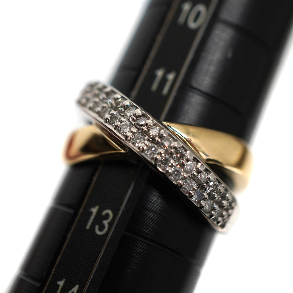 ゴールドとプラチナがクロスしたデザインで存在感のあるリングです。 お手元のアクセントにおすすめです。 是非いかがでしょうか。
