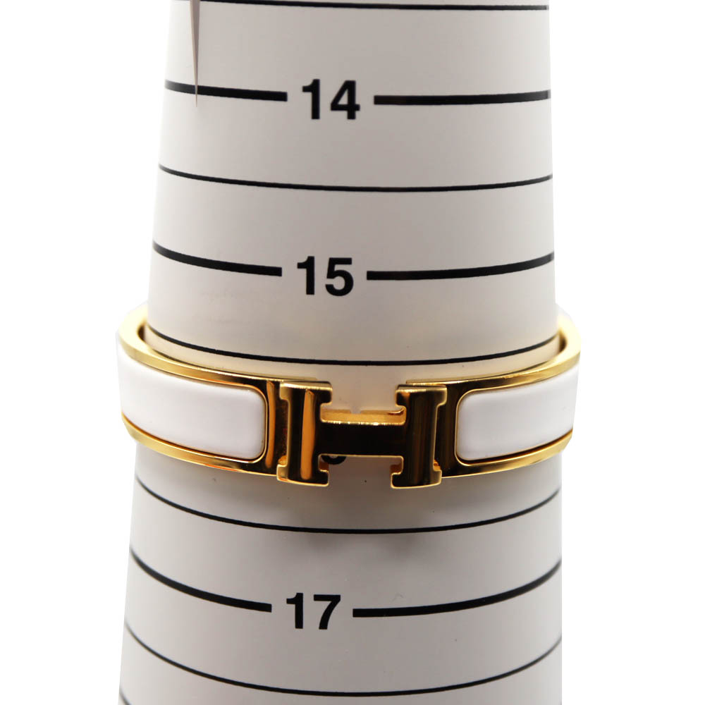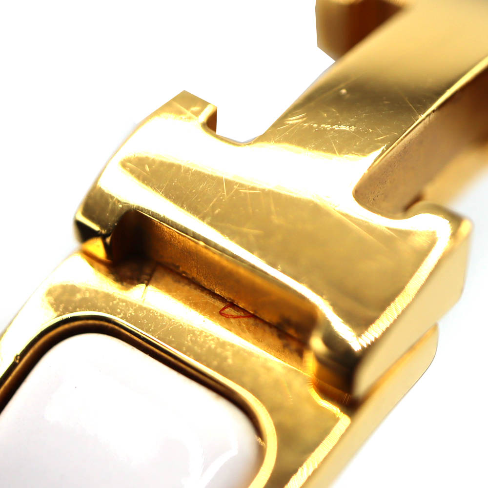 ホワイトカラーのエナメルにHモチーフのゴールド金具が映える、エルメスらしい洗練されたデザイン。