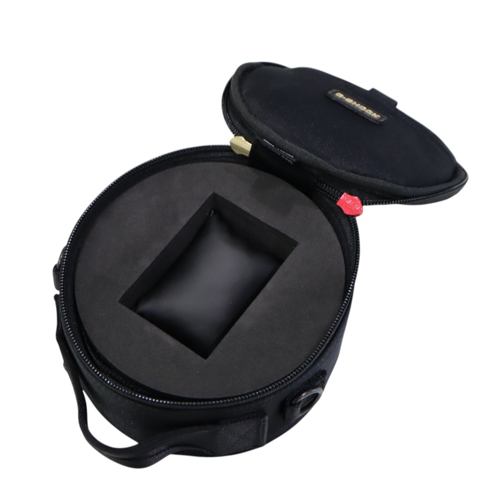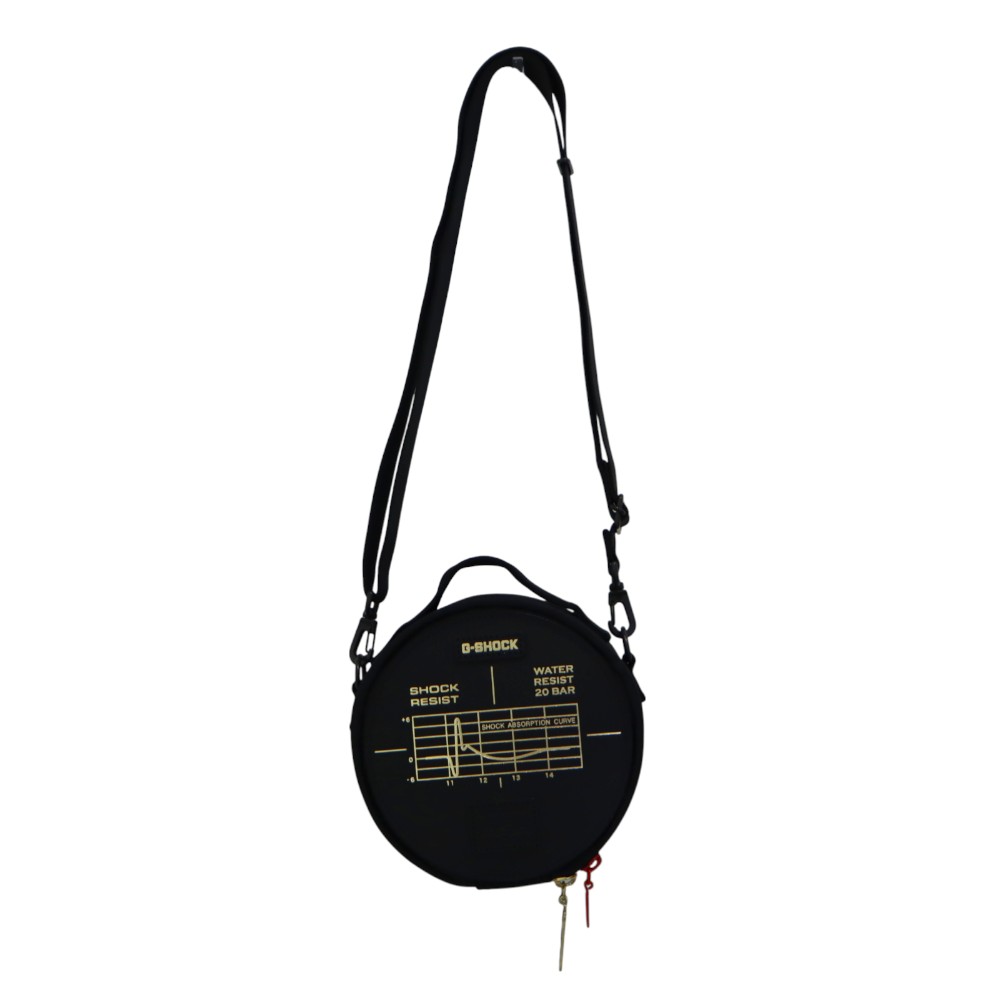 AW-500Gのディテールに着目し、グラフィックや針の形状をモチーフにデザインされ、ファスナーには時分針をイメージしレッドとゴールドを用い、天面には耐衝撃グラフをゴールドで箔押しが施されています。