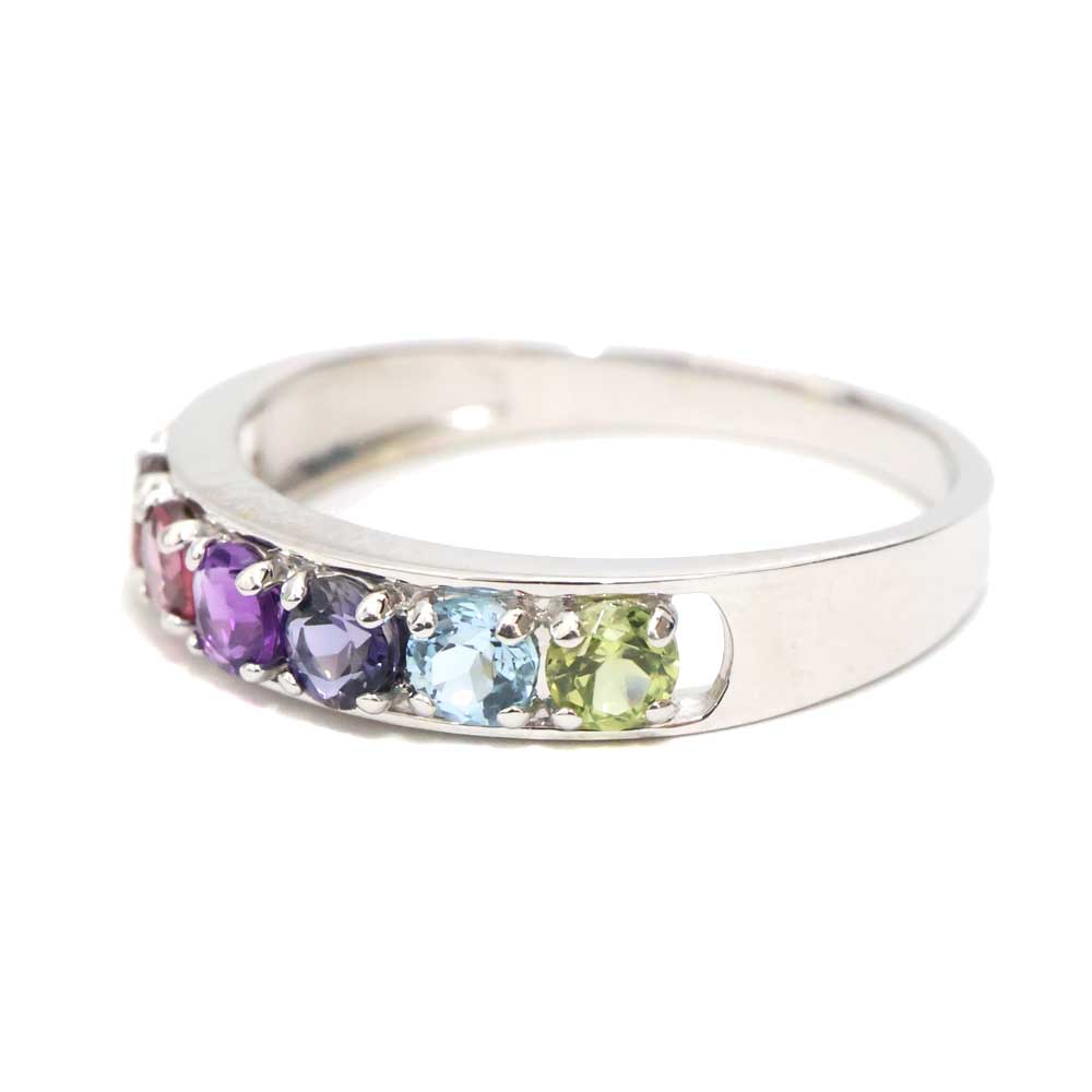 カラフルな色石がセットされたリングとなっております。 お手元を華やかに彩ってくれるジュエリーです。 この機会に是非いかがでしょうか。