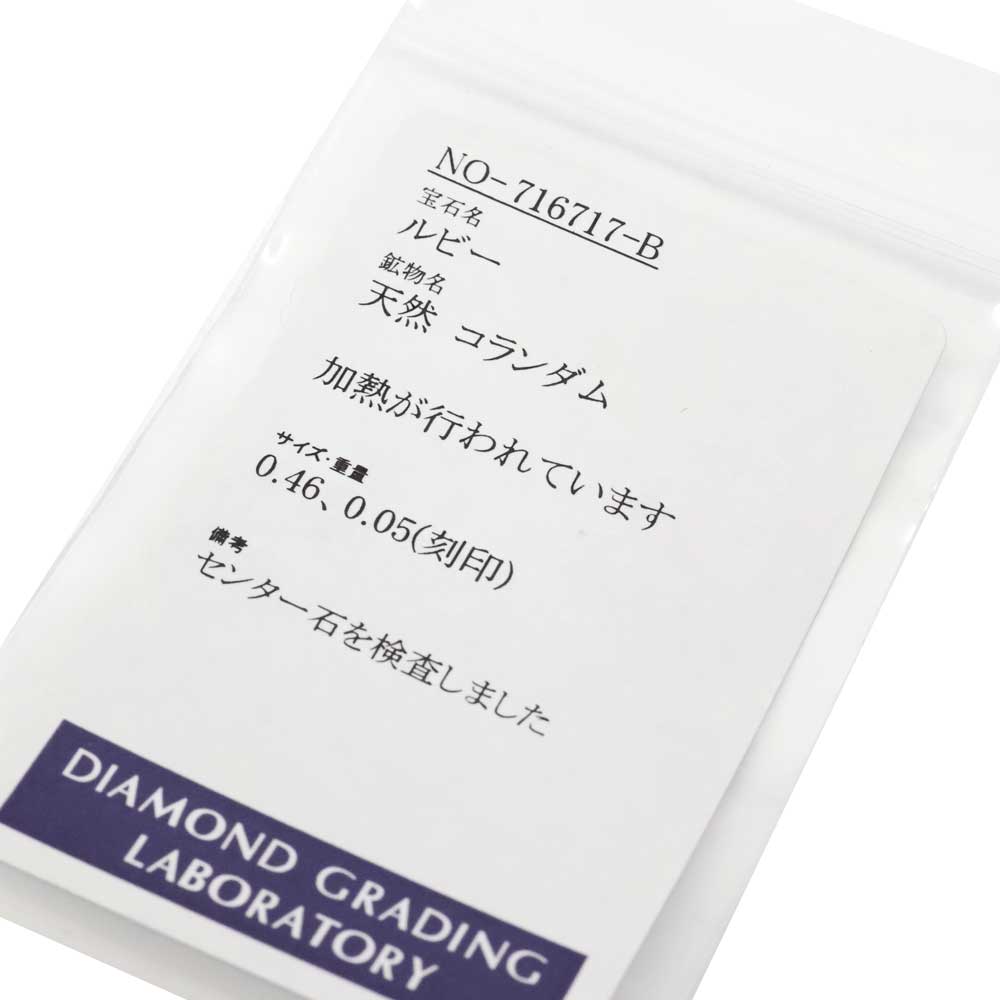 | 素材 | K18【18金】 ルビー:0.46ct ダイヤモンド:0.05ct |