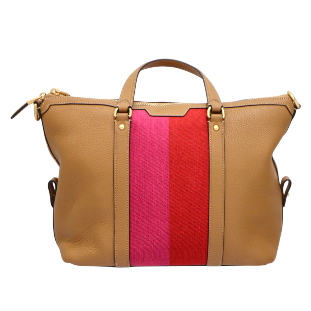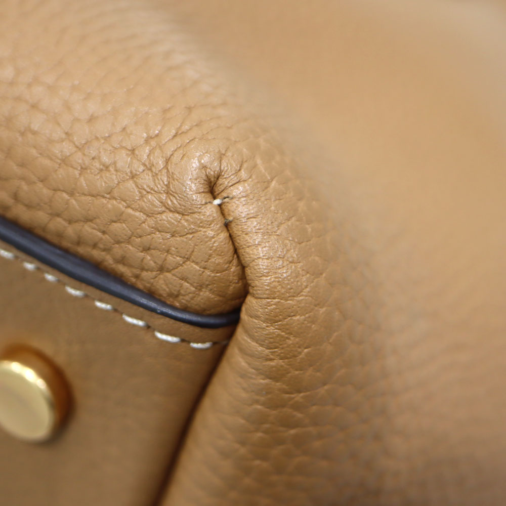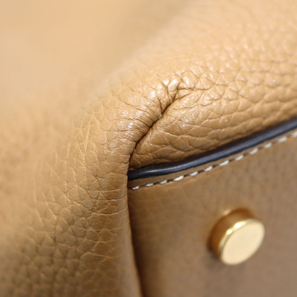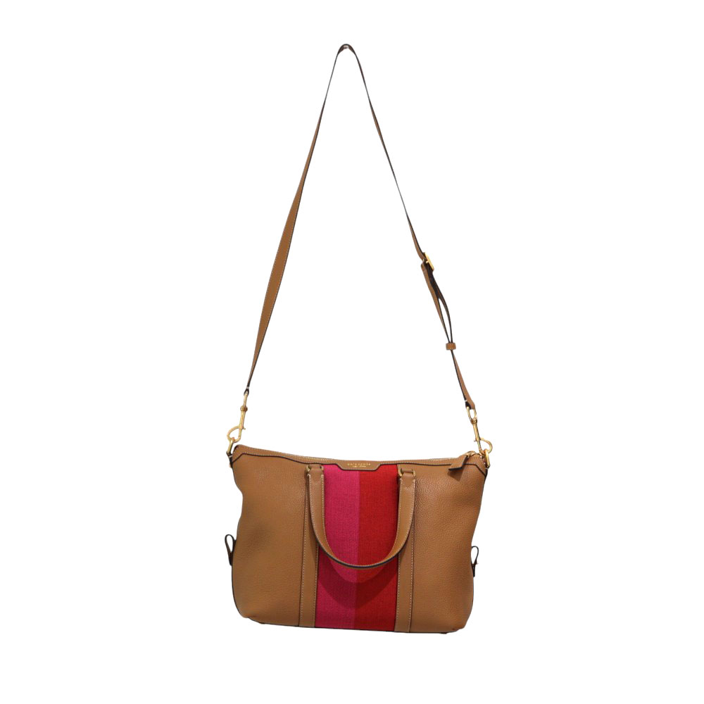 しっかりとしたレザー製のバッグです。 中央のカラーキャンバスのアクセントが可愛らしいデザインのアイテムです。 着脱可能なストラップも付属しており、気分や用途によってお使いいただけます。 お探しの方はこの機会に是非いかがでしょうか。 ※尚、当サイトの販売金額より店頭での販売金額の方をお安く設定させて頂いております。(一部セール品等を除く)