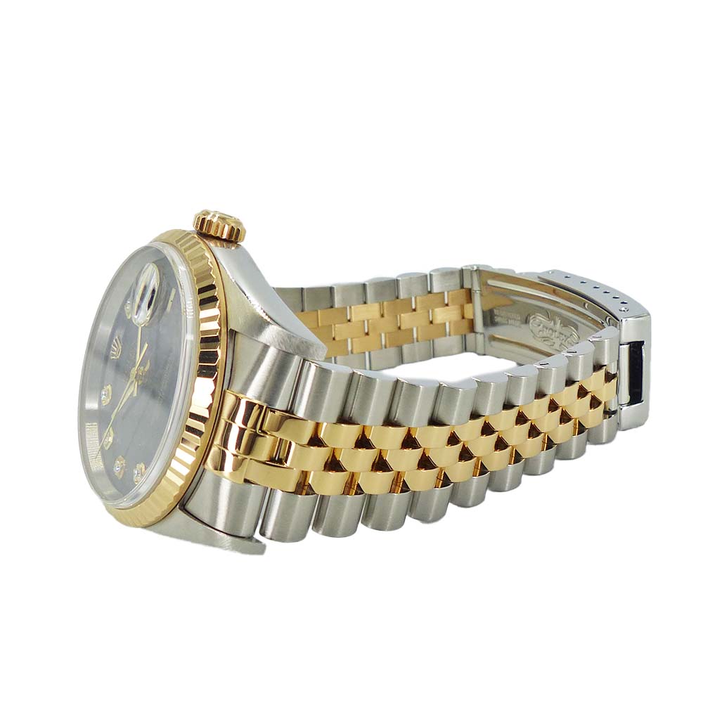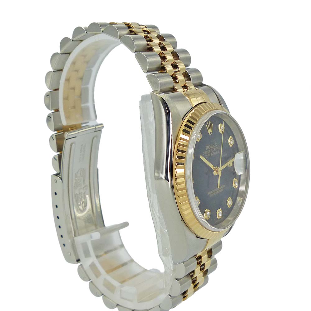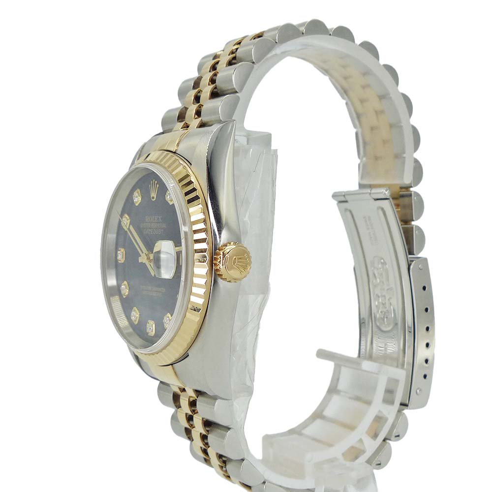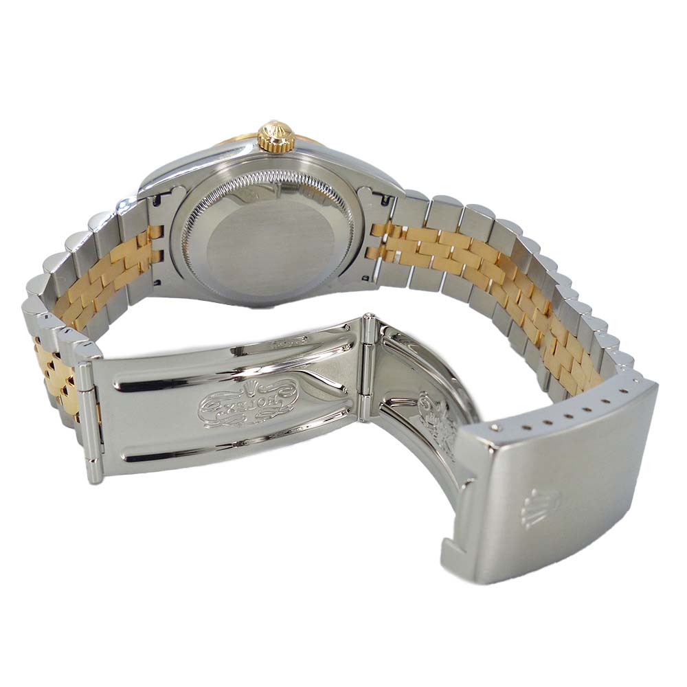 | 商品説明 | ロレックスの三大機構を搭載した人気モデルです。午前0時頃に瞬時に日付が切り替わるデイトジャスト機構、腕の動きでゼンマイを巻き上げる全回転式ローターのパーペチュアル機構、そして高い防水性を誇るオイスターケースを備えています。