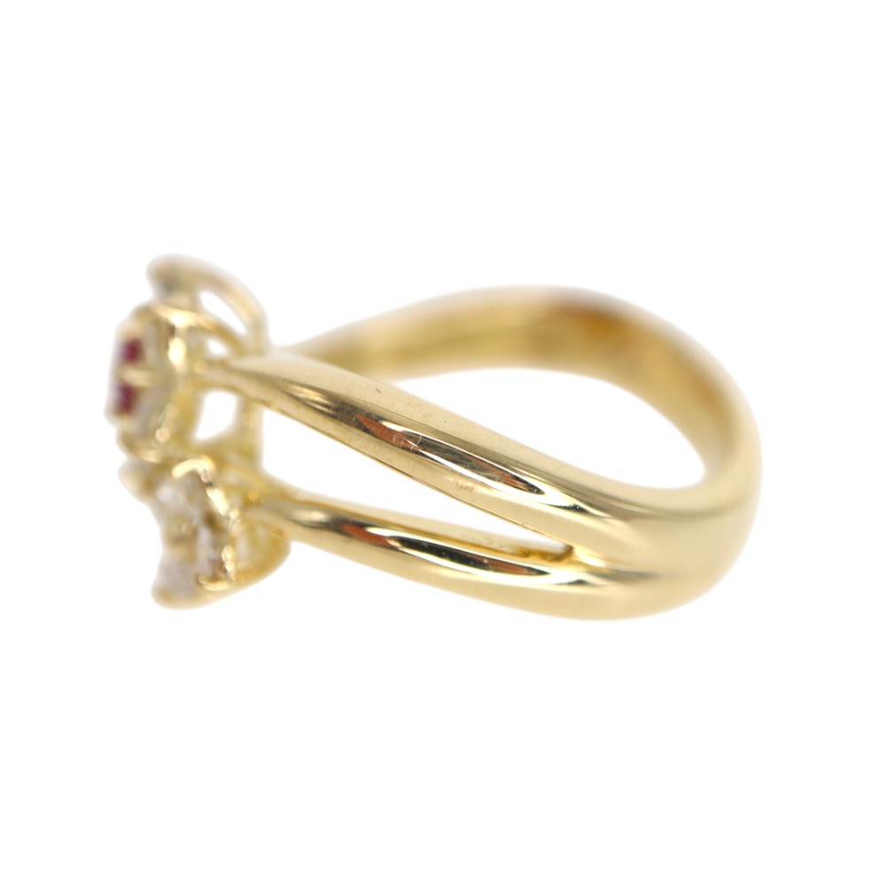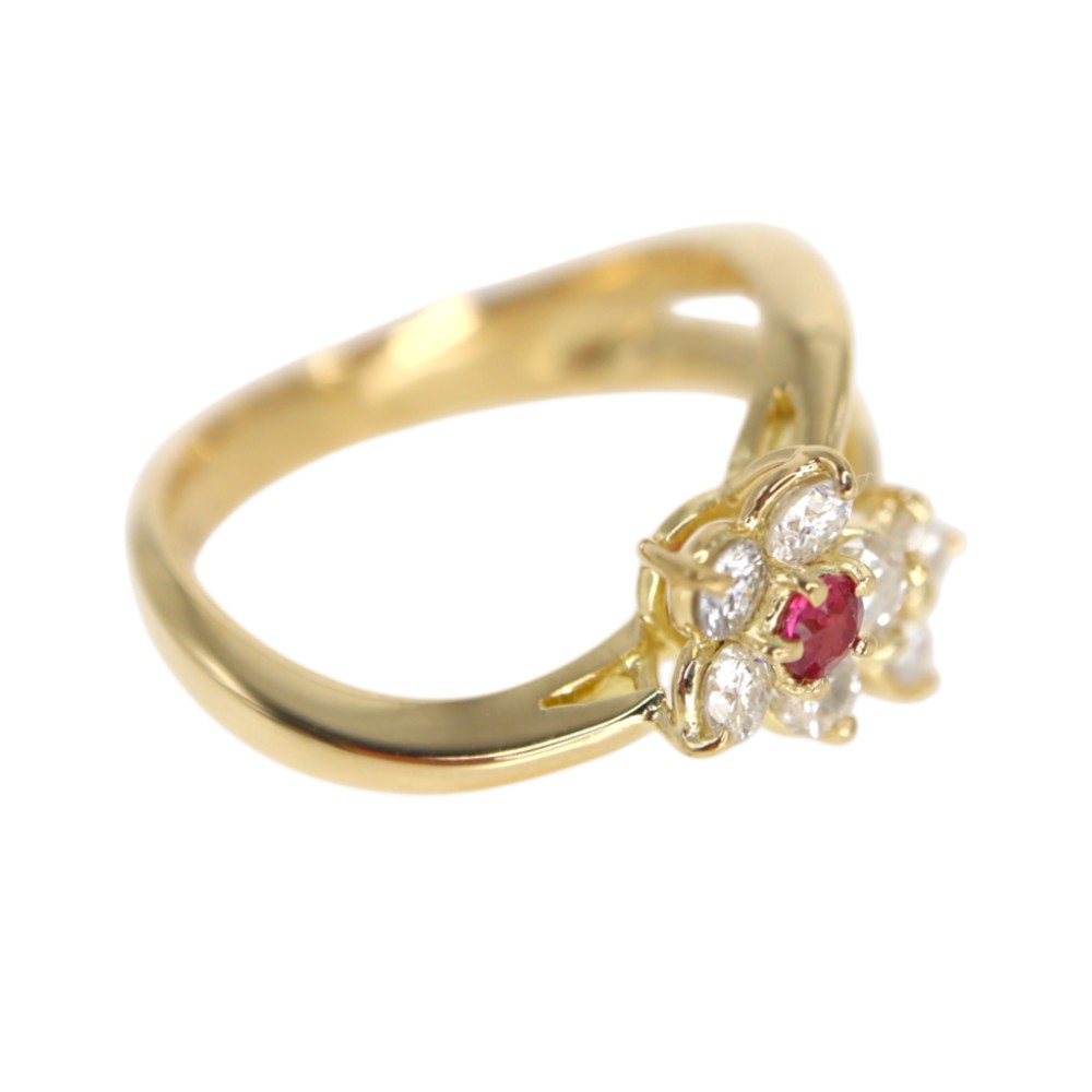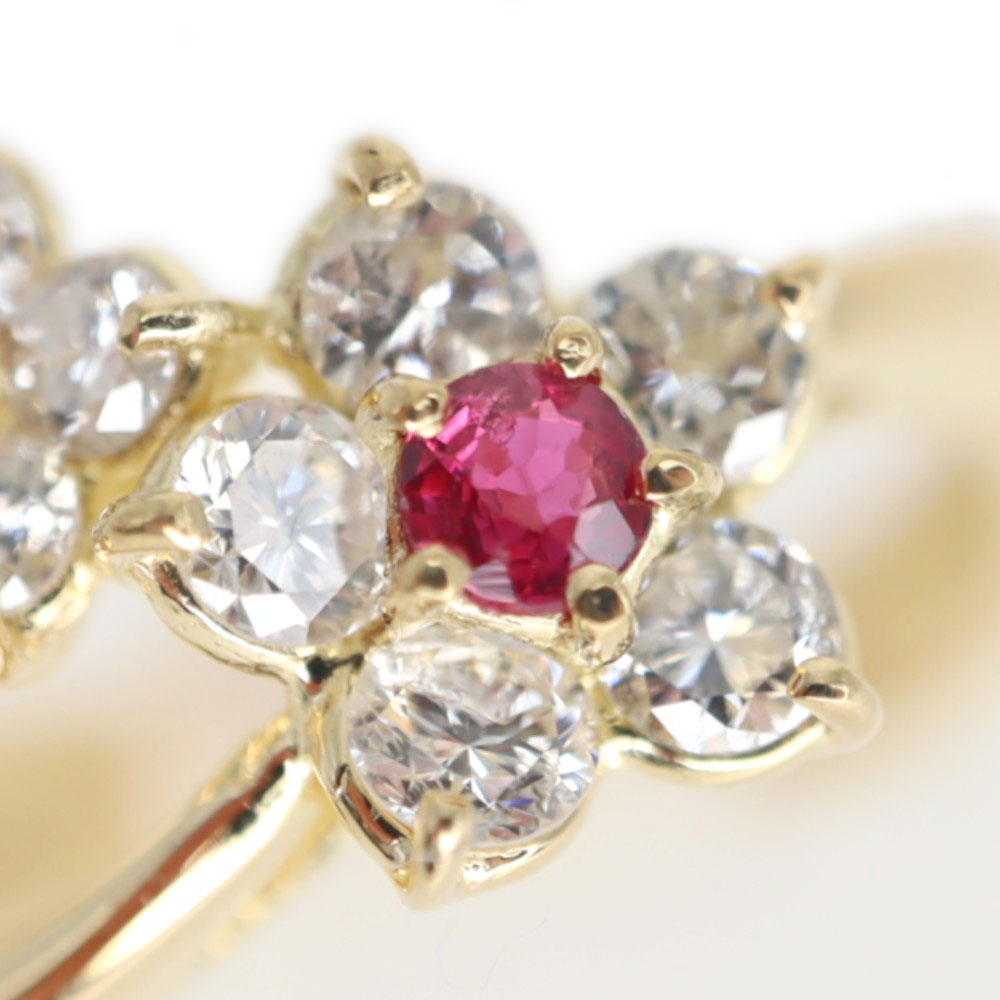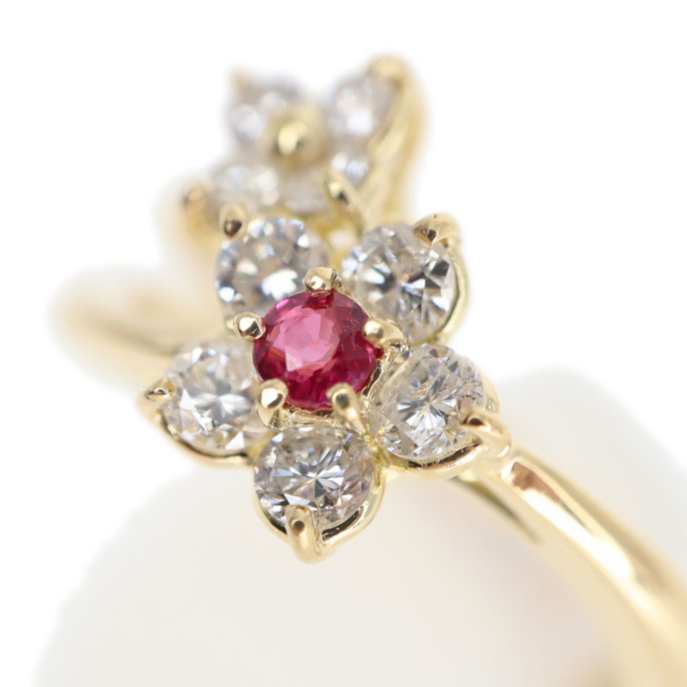 可愛らしいお花のモチーフが二つ付いているリングです。 お花の中央にはルビーがアクセントにセッティングされています。 柔らかい曲線のデザインが指元を華奢に魅せてくれます。