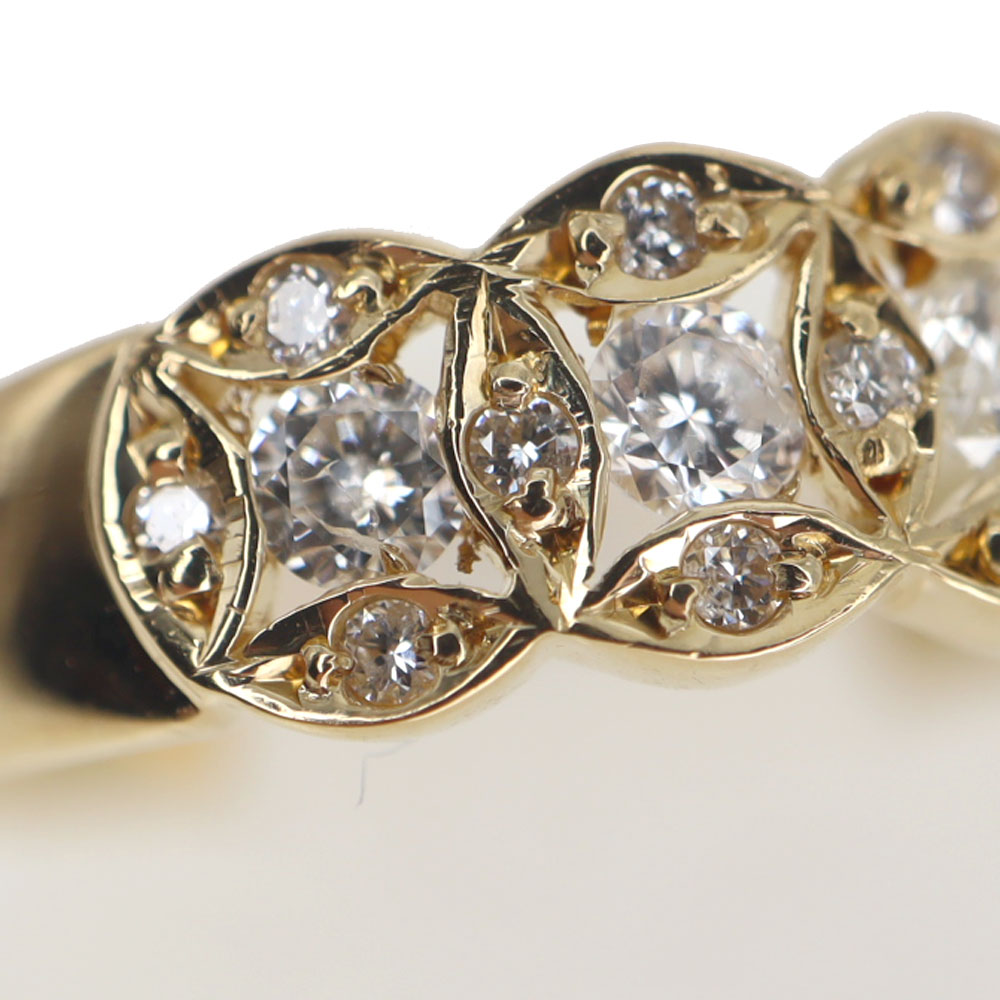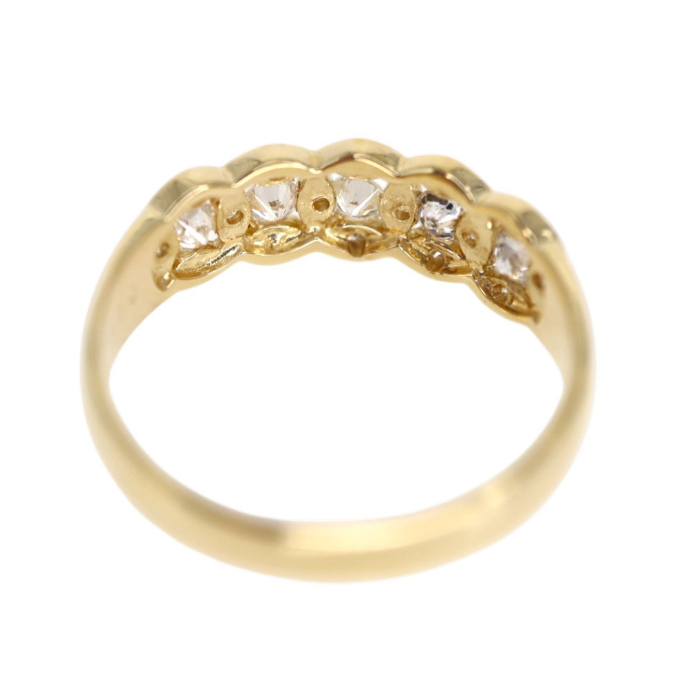 5つのダイヤモンドが並んだリング。 それぞれ星のようなデザインが周りに施されていて、デザイン性もあります。 お手持ちのリングに重ね付けしてもお楽しみいただけます。