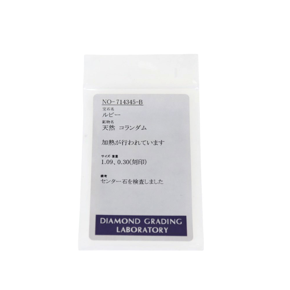 | 重さ | 総重量約:5.7g ルビー:1.09ct ダイヤモンド:0.30ct |