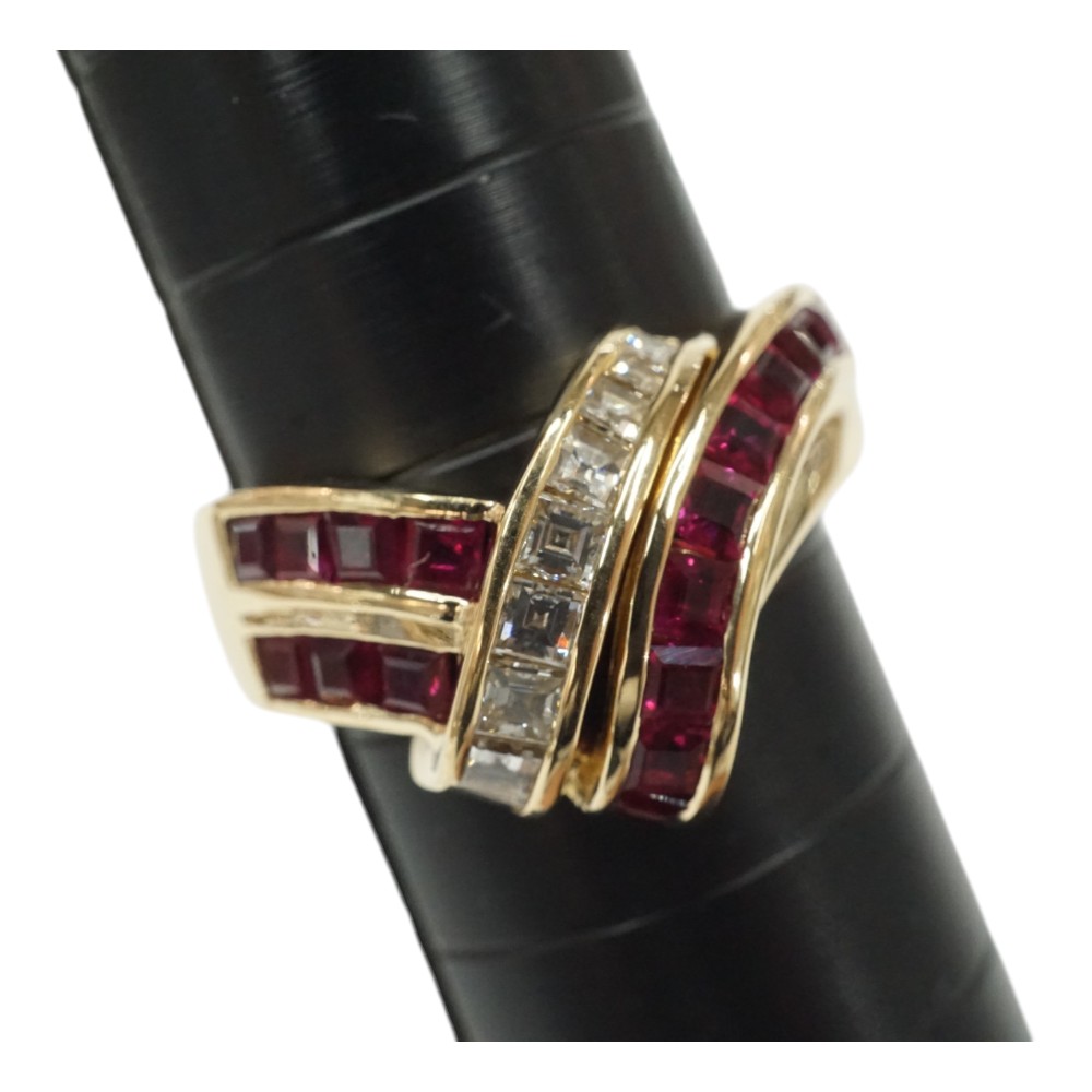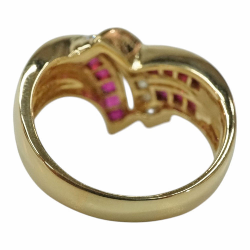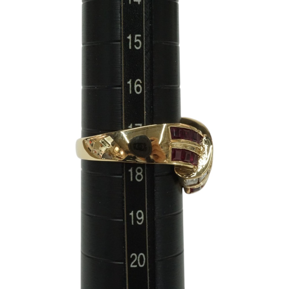 ルビーとダイヤモンドが施された存在感のある上品なデザインリングです。 お手元のアクセントにぜひいかがでしょうか。