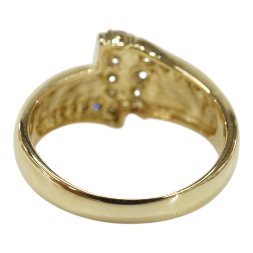 ダイヤモンドが施された存在感のある上品なデザインリングです。 お手元のアクセントにぜひいかがでしょうか。