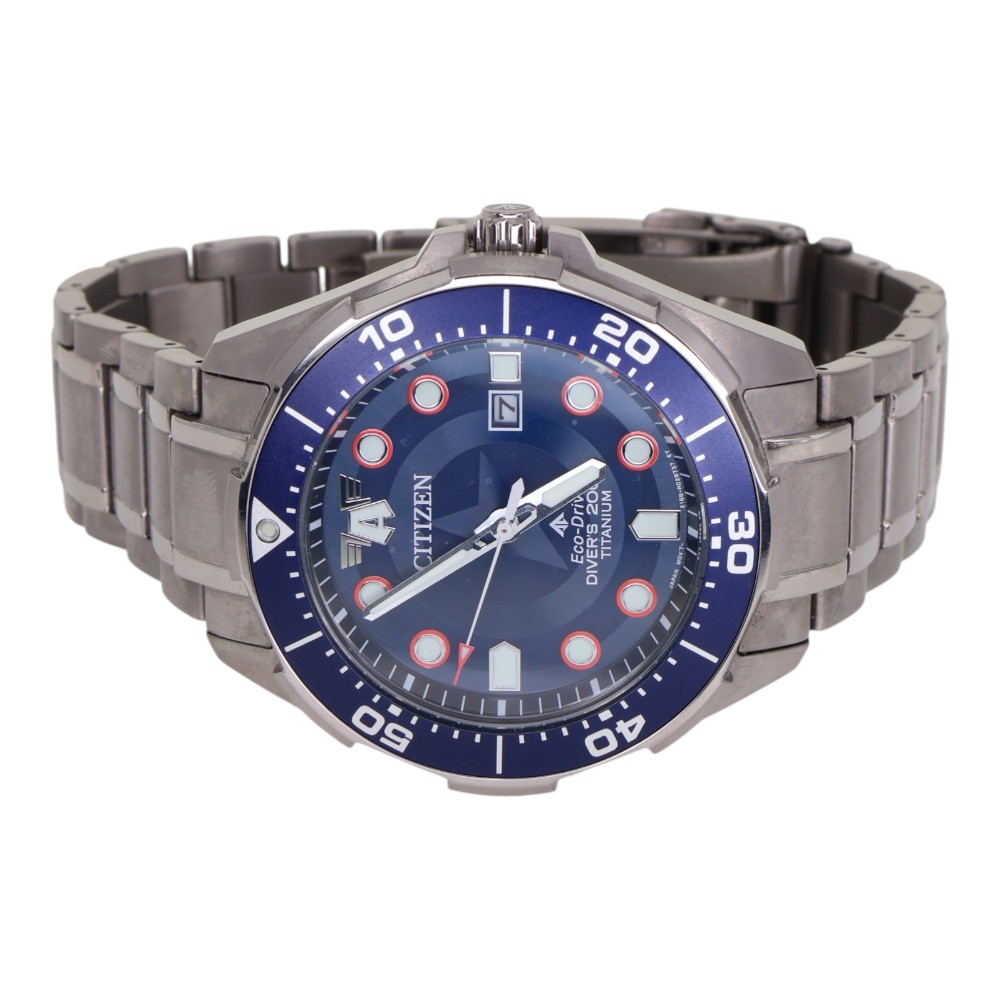 | 仕様 | エコドライブ(ソーラー) キャリバー:E168 精度:ソーラーの為未計測。 防水:200m防水 デイト表示 |