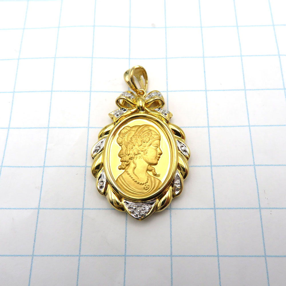 | 商品説明 | K24ペンダントトップのご紹介です。 女性の横顔が描かれたコインを20金の額で飾ったようなデザインのトップです。 お手持ちのチェーンにつけてネックレスとしてご使用いただけます。 この機会にぜひいかがでしょうか。 ※尚、当サイトの販売金額より店頭での販売金額の方をお安く設定させて頂いております。予め、ご了承下さいませ。(一部セール品等を除く) |