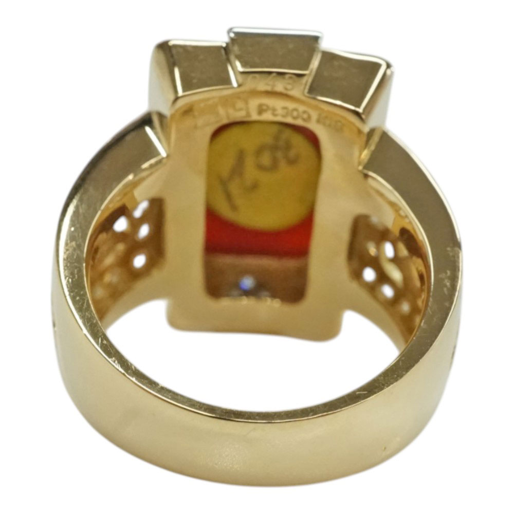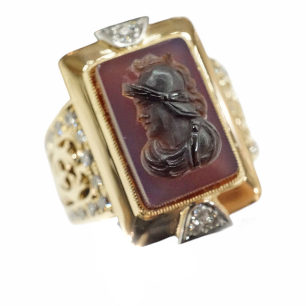 カメオが付いたオシャレなリングです。 2色の地金を使用しているので、お手持ちのジュエリーにも合わせやすいです。 この機会に是非いかがでしょうか。