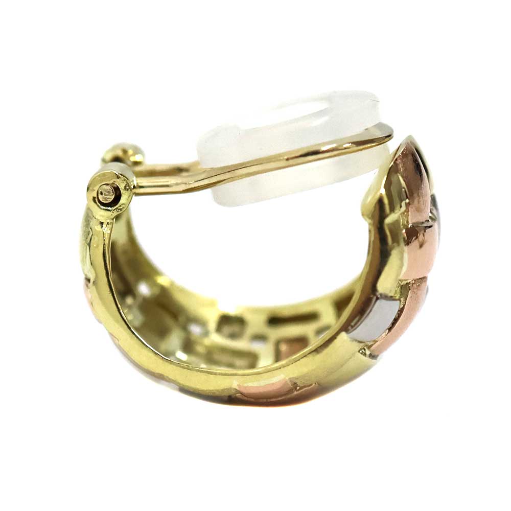 大きめで存在感のあるイヤリングとなります。 イエローゴールド×ピンクゴールド×シルバーのスリーカラーが特徴的で美しいデザインです。 この機会に是非いかがでしょうか。