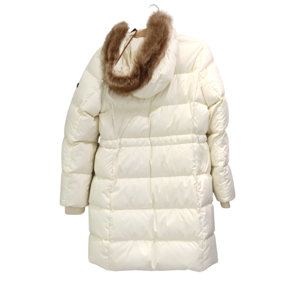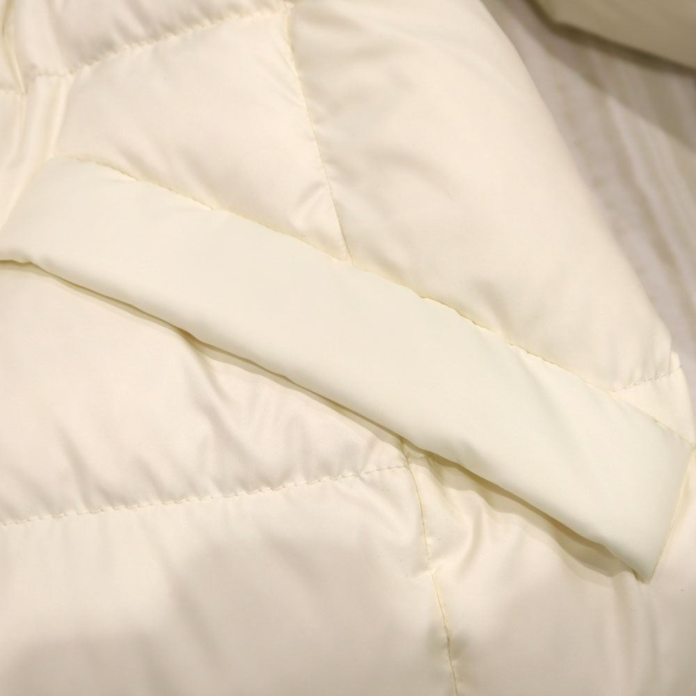 女性らしいシルエットのロング丈のダウンです。 ファー部分は取り外すことができ気分によって使い分けられます。 袖口はリブになっており、防寒性もばっちりです。 この機会に是非いかがでしょうか。