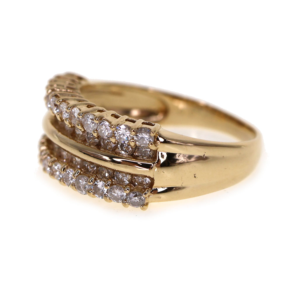 ダイヤモンドが1.00ctセッティングされた、 豪華なリングになっています。 一番太い部分で7mmの幅をしています。 きれいにお手元を演出してくれます。 この機会に是非いかがでしょうか。