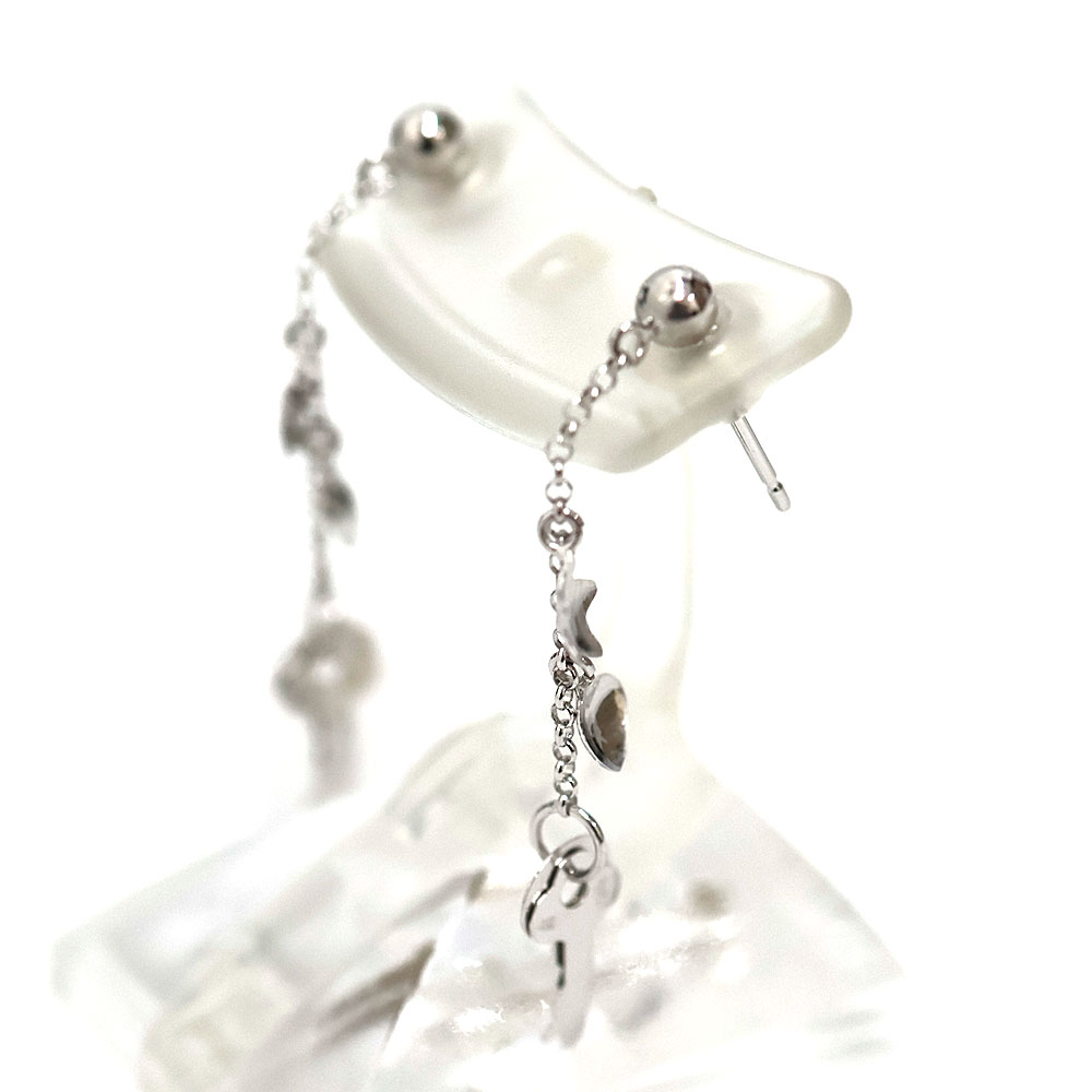 繊細なチェーンの先に、星やハート、鍵モチーフがバランスよくあしらわれており、動くたびに軽やかに揺れて華やかな印象を演出します。 異なるモチーフの組み合わせが個性的で、コーディネートのアクセントとしてもぴったりです。 この機会に是非いかがでしょうか。