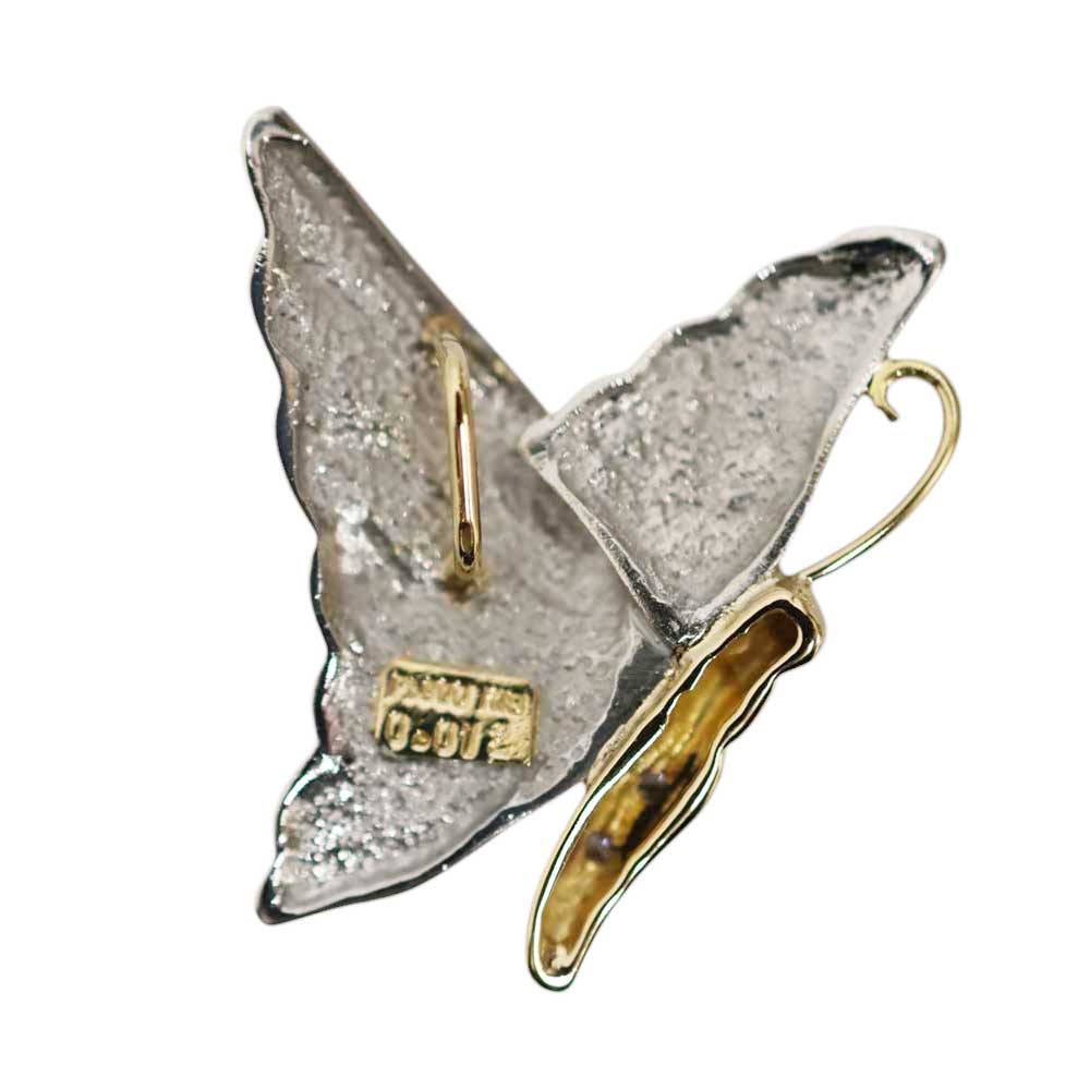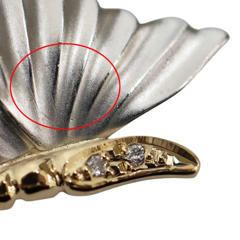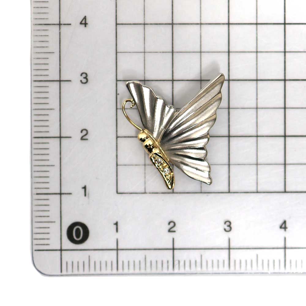 ゴールドとシルバーの組み合わせが上品なペンダントトップでございます。 バタフライモチーフで小粒のダイヤモンドがあしらわれており、胸元を華やかに演出してくれます。 この機会に是非いかがでしょうか。