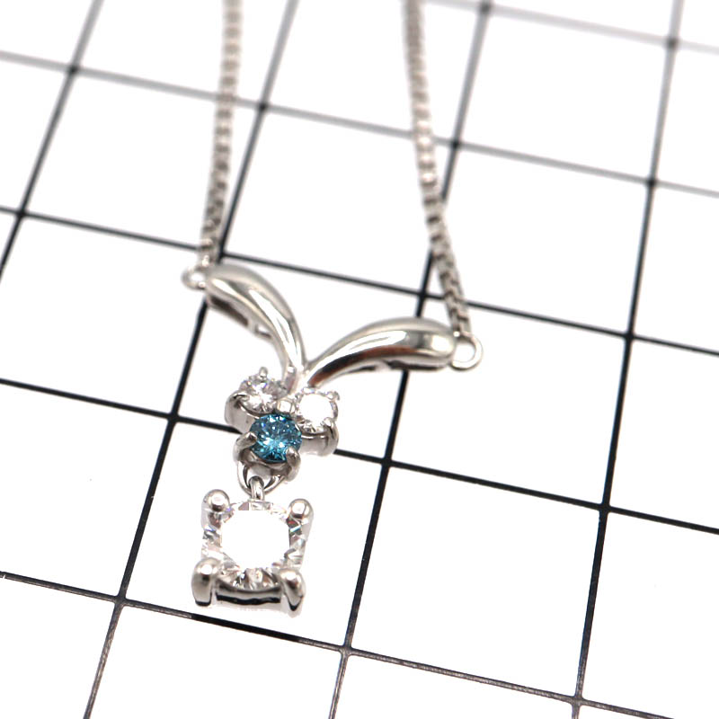 トップには合計0.16ctのダイヤモンドをあしらい、ブルーダイヤモンドならではの落ち着いた色合いと上品な輝きが胸元を美しく演出します。