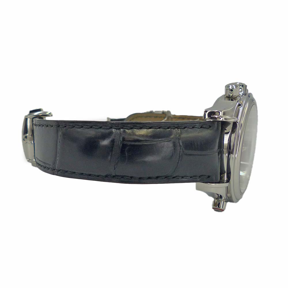 | 商品説明 | 個性とスポーティさを兼ね備えた一本。ブラックダイアルにシルバーの30分・12時間積算計とスモールセコンド、11時位置の日付表示を備え、スプリットセコンド針で経過時間を瞬時に把握できます。