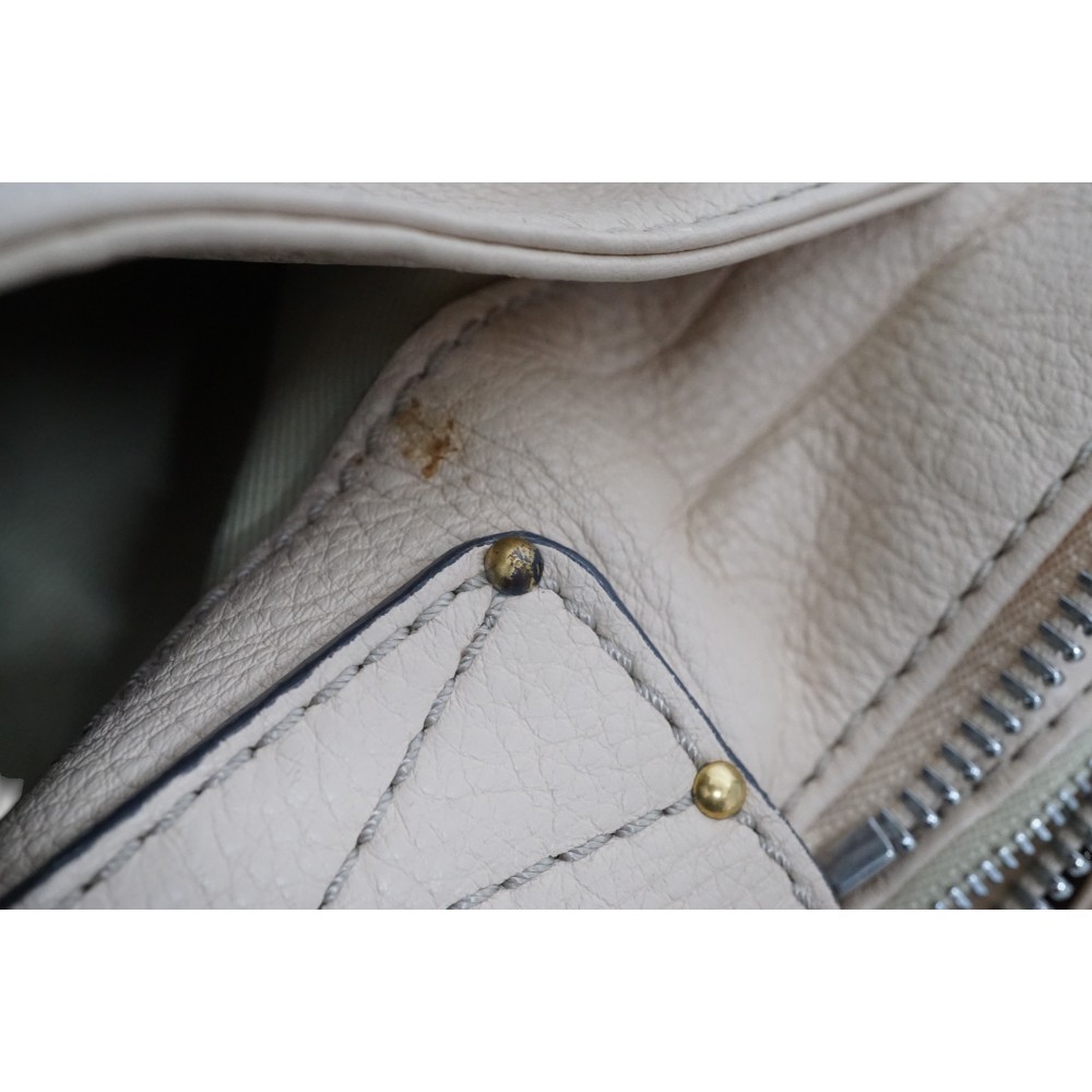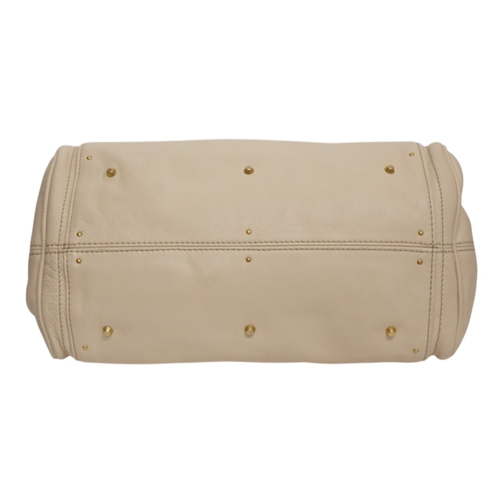 上品なクリーム色のバッグに大きなゴールド金具が施された豪華な印象のバッグです。 サイズ感も大きくどんな場面でも活躍間違いなしです。 お探しの方はこの機会にぜひいかがでしょうか。