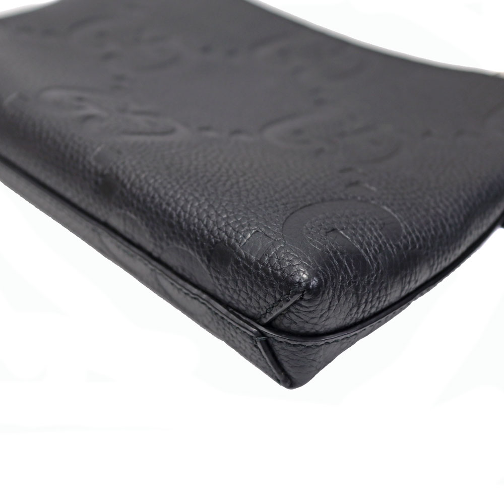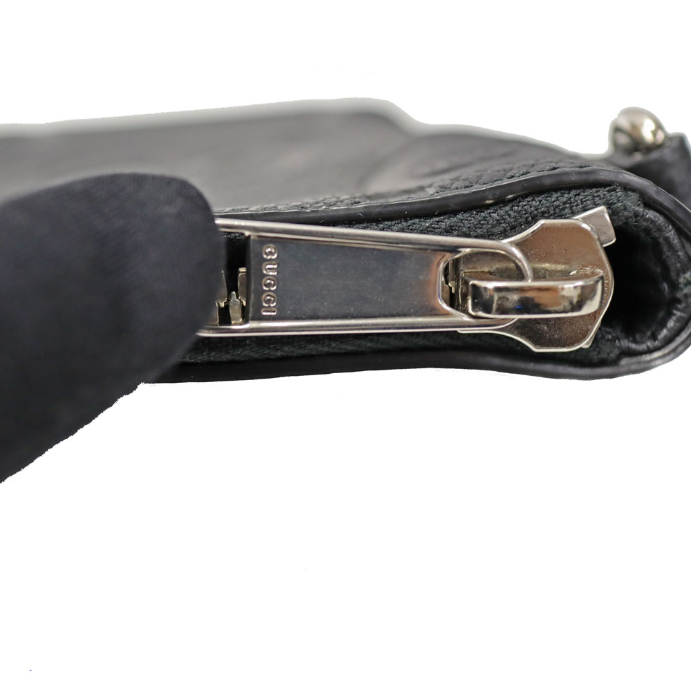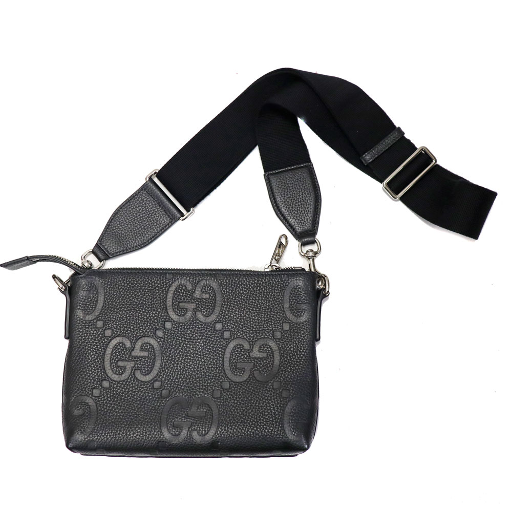 ジャンボGGの柄が目を惹き、落ち着いたブラックのレザーがシックな印象をもたらします。 クラッチバッグとしてだけでなく、付属のショルダーストラップを付ければショルダーバッグとして使える機能的なアイテムです。