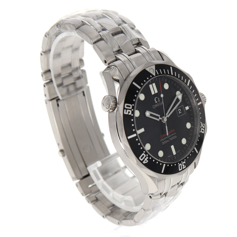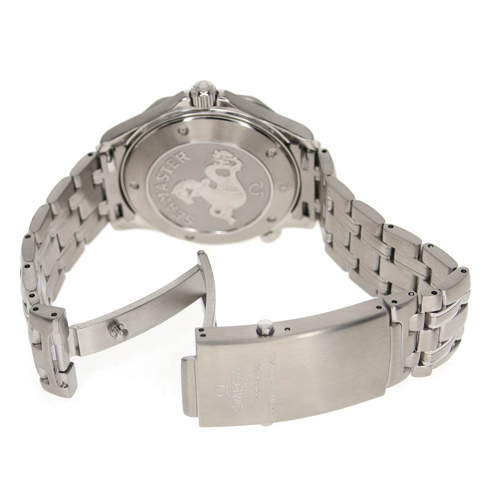 | 仕様 | クォーツ キャリバー:オメガ1538 30気圧 (300メートル / 1000 フィート) ねじ込み式リュウズ ヘリウムエスケープバルブ 日付表示 逆回転防止ベゼル 内側に無反射処理を施した、ドーム型強化サファイアガラス |